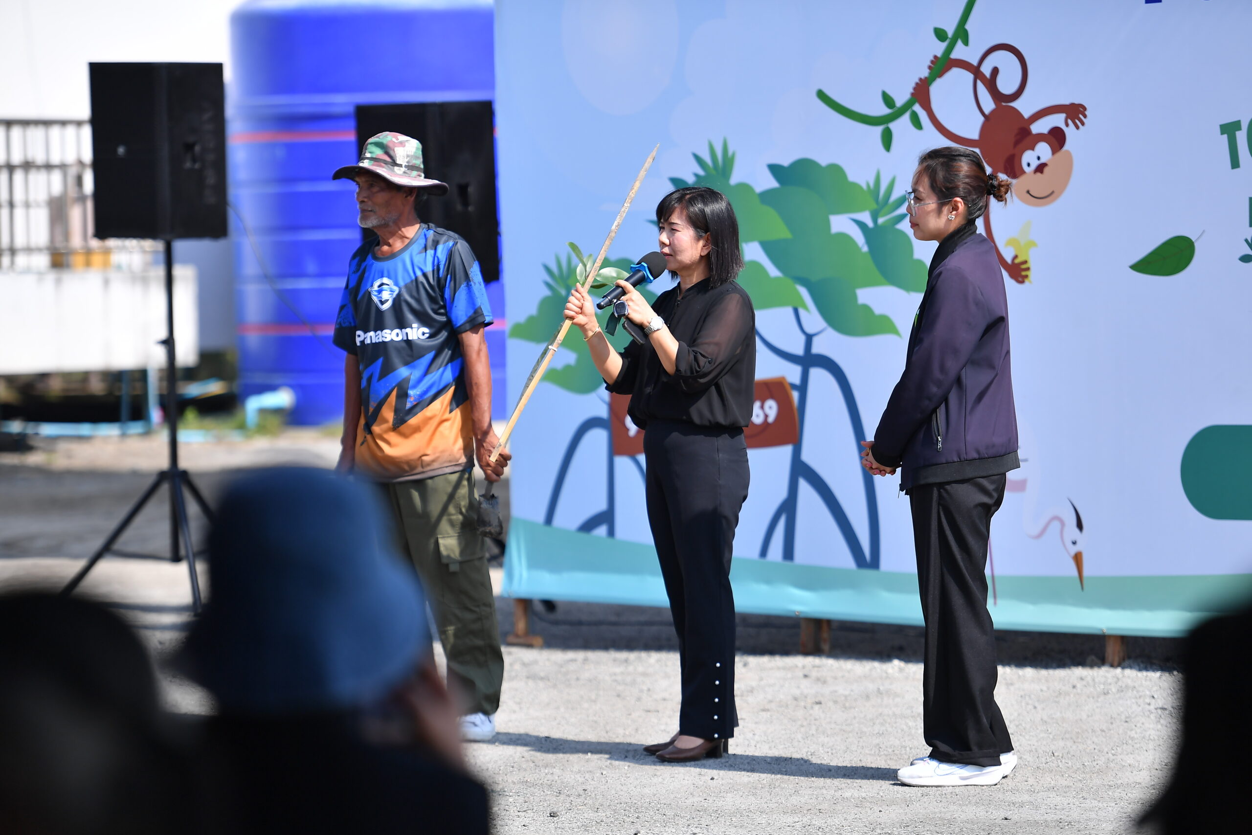 สำหรับจำนวนต้นโกงกางกว่า 1,222 ต้น ที่นำมาปลูกได้รับความร่วมมือจากพนักงานและพันธมิตรผ่าน 2 กิจกรรมหลัก ได้แก่ Panasonic Hero Run Green Impact for Charity 2025 เปลี่ยนระยะทางวิ่งทุก 10 กิโลเมตรเป็นต้นไม้ 1 ต้น โดยสามารถสะสมระยะทางได้รวม 10,917 กิโลเมตร คิดเป็นจำนวนต้นไม้ 1,092 ต้น และกิจกรรม Panasonic Let’s grow แคมเปญรณรงค์คัดแยกขวดพลาสติก ทุก 20 กิโลกรัมจะถูกเปลี่ยนเป็นต้นไม้ 1 ต้น ซึ่งรวบรวมขวดพลาสติกได้กว่า 2,600 กิโลกรัม หรือคิดเป็นต้นไม้กว่า 130 ต้น