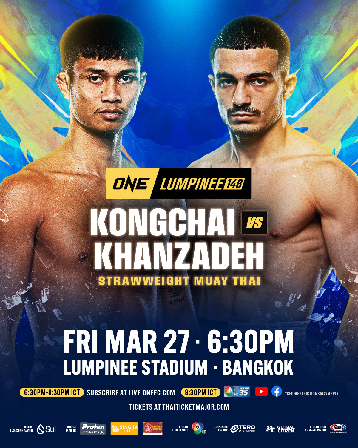 ศึก ONE ลุมพินี 148 เริ่มการแข่งขันคู่แรกเวลา 18.30 น. จองบัตรเข้าชมในสนามได้ทาง THAI TICKET MAJOR