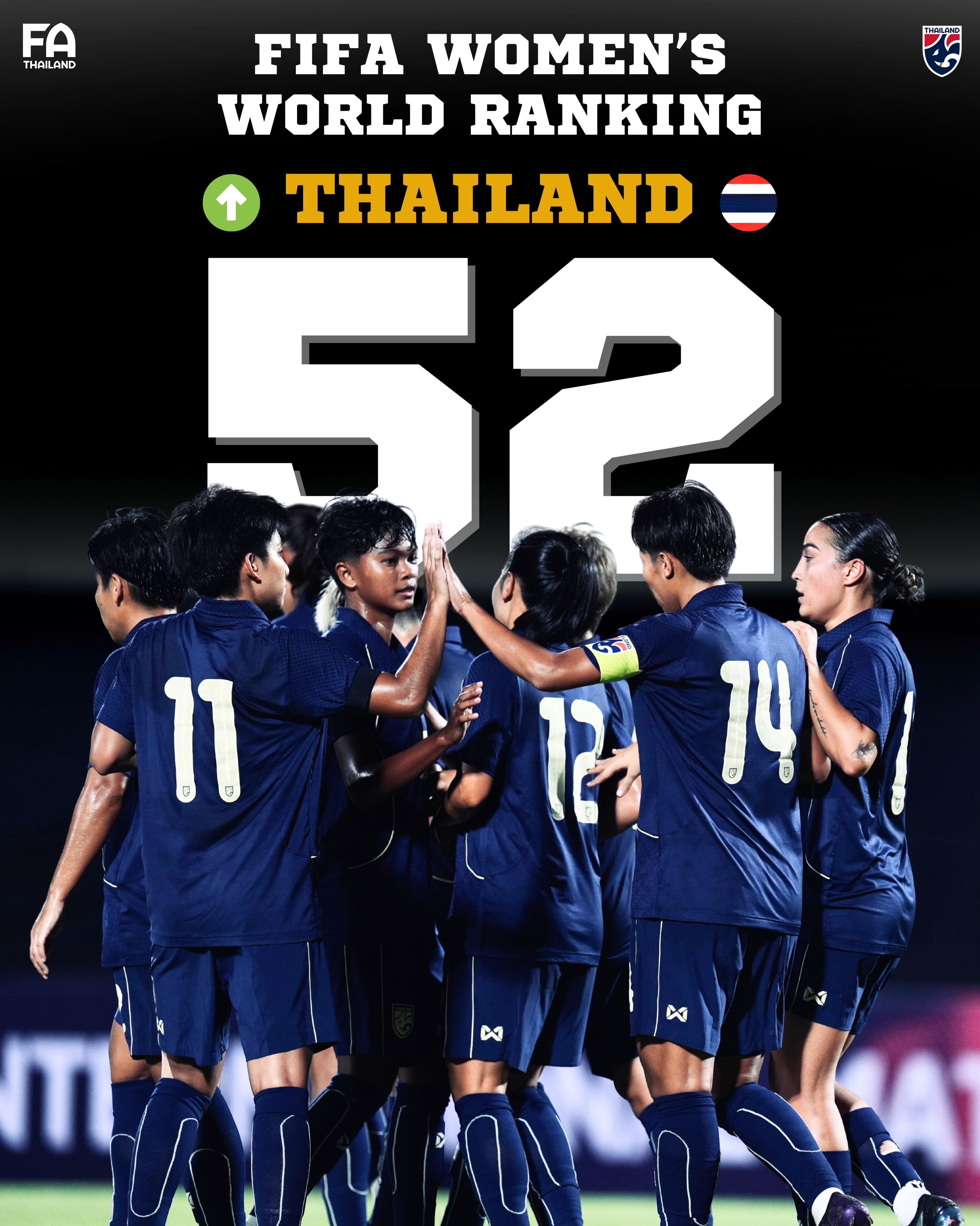 สหพันธ์ฟุตบอลนานาชาติ หรือ ฟีฟ่า ประกาศผลการจัดอันดับโลก ของฟุตบอลหญิง FIFA Women’s World Ranking อย่างเป็นทางการ โดย ฟุตบอลหญิงทีมชาติไทย ขึ้นมารั้งอันดับ 52 ของโลก