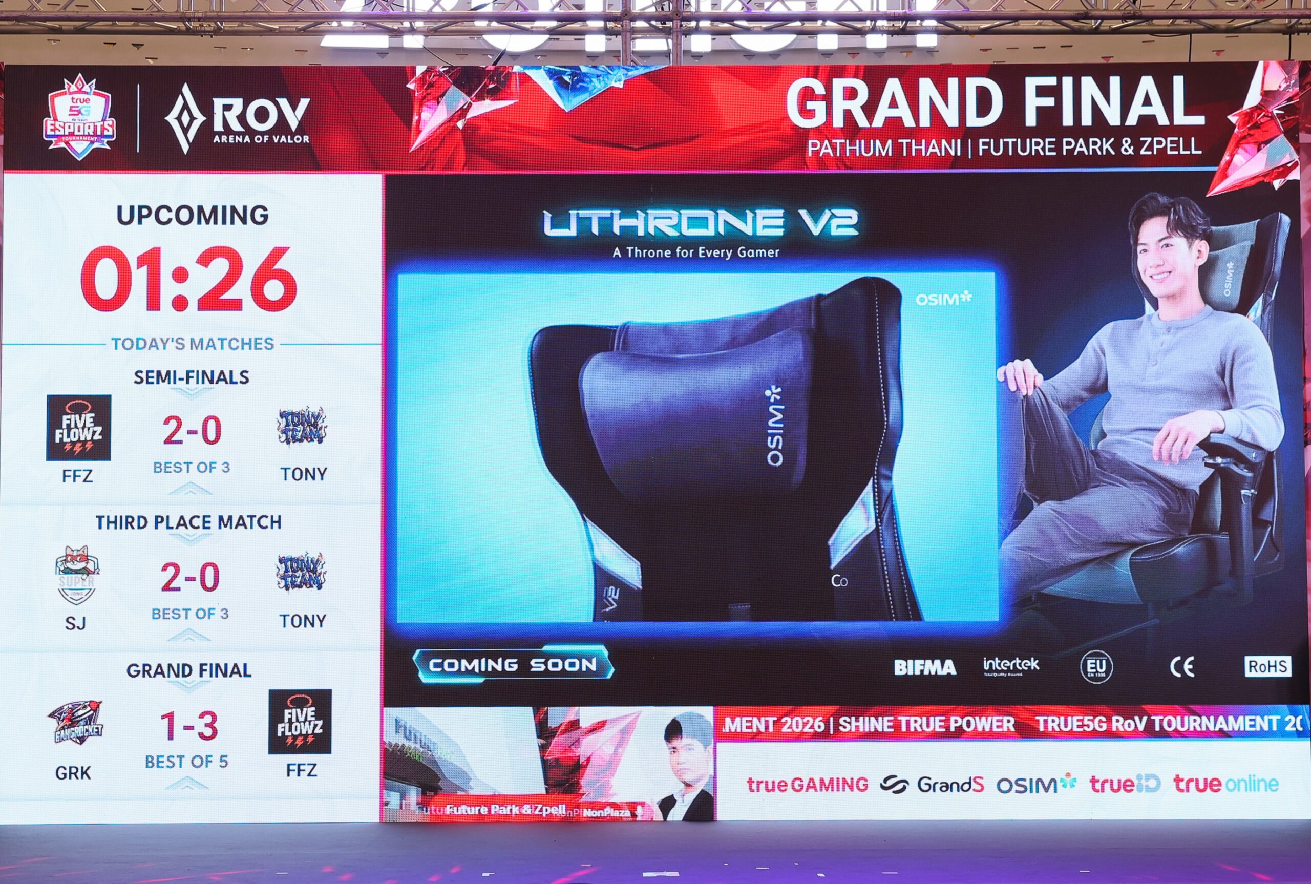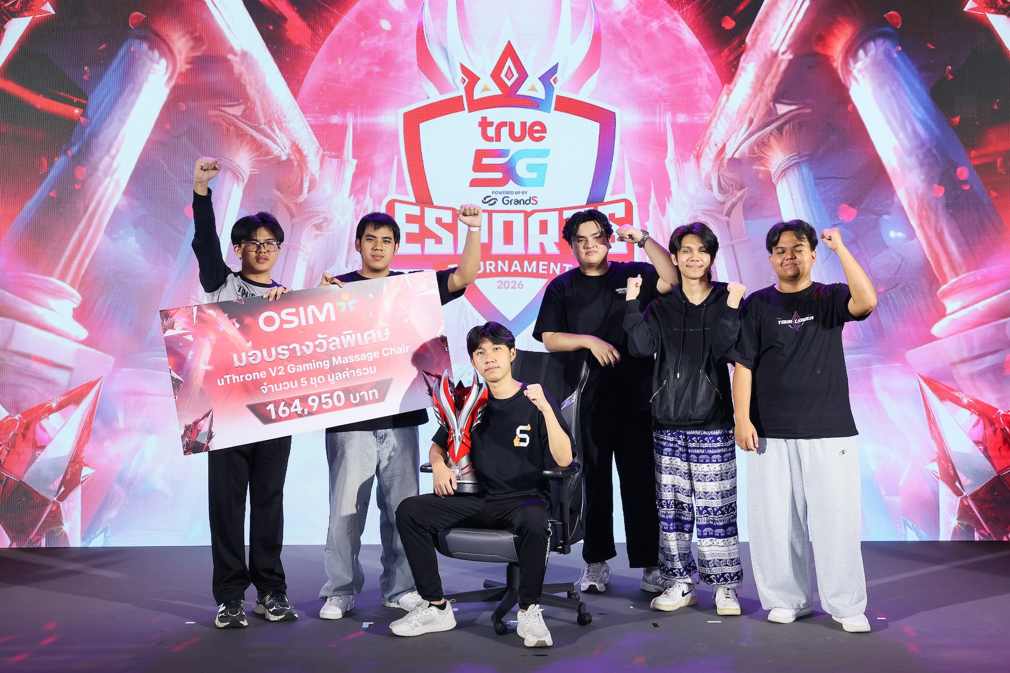 ภายใต้แคมเปญ “The Throne for Every Gamer” OSIM ผนึกกำลังกับ True5G eSports Tournament สร้างปรากฏการณ์ครั้งสำคัญให้วงการอีสปอร์ตไทย ด้วยการเปิดตัว uThrone V2 Gaming Massage Chair อย่างเป็นทางการครั้งแรกในประเทศไทย บนเวทีรอบชิงชนะเลิศของการแข่งขัน True5G eSports Tournament บรรยากาศการแข่งขันสุดเข้มข้น ไฮไลต์พิเศษของงาน คือการมอบ uThrone V2 Gaming Massage Chair มูลค่า 164,950 บาท ให้แก่ผู้ชนะการแข่งขันเกม ROV ในฐานะเกมเมอร์กลุ่มแรกของประเทศที่ได้ครอบครองนวัตกรรมเก้าอี้เกมมิ่งผสานระบบนวดอัจฉริยะ สะท้อนแนวคิดการยกระดับประสบการณ์การเล่นเกมไปอีกขั้นด้วยเทคโนโลยีฟื้นฟูร่างกายแบบเรียลไทม์ระหว่างการแข่งขัน เพื่อให้ผู้เล่นสามารถรักษาฟอร์มการเล่นได้อย่างต่อเนื่องและมีประสิทธิภาพสูงสุด