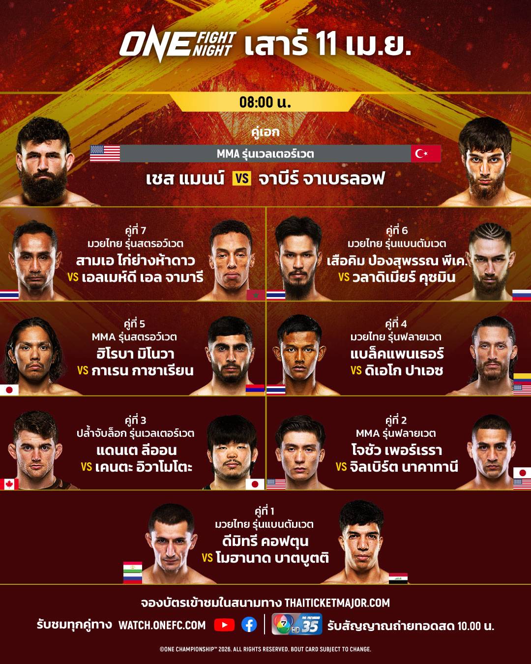 มันเต็มพิกัด 16 นักสู้ผ่านด่านตาชั่ง พร้อมล่าชัยศึก ONE Fight Night 42 เช้าวันเสาร์ 11 เม.ย.