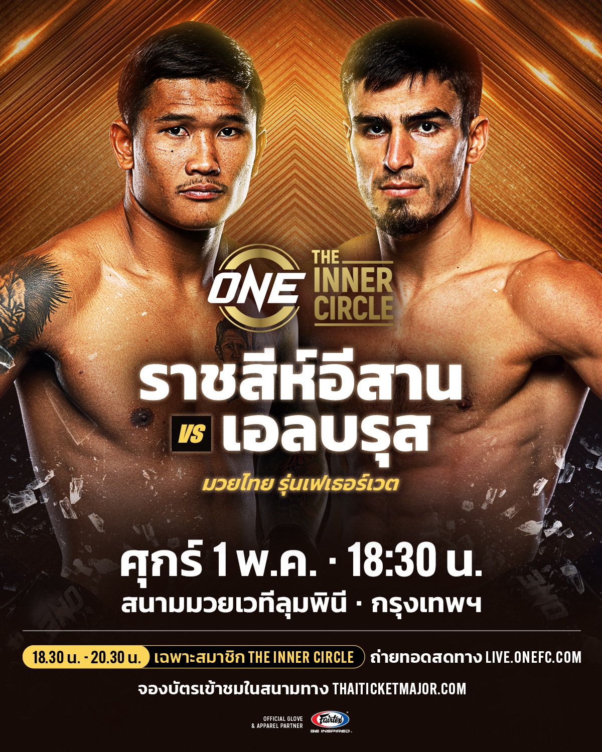 ติดตาม “ราชสีห์อีสาน vs เอลบรุส” วันศุกร์ที่ 1 พ.ค. นี้ จองบัตรเข้าชมในสนามผ่านทาง THAI TICKET MAJOR  สำหรับผู้ชมทางบ้าน สามารถรับชมการถ่ายทอดสด The Inner Circle ในช่วงเวลา 18.30 น. – 20.30 น. ทาง LIVE.ONEFC.com สงวนสิทธิ์เฉพาะสมาชิกเท่านั้น ดูรายละเอียดการสมัครสมาชิกได้ที่ลิงก์นี้ ONEFC.com