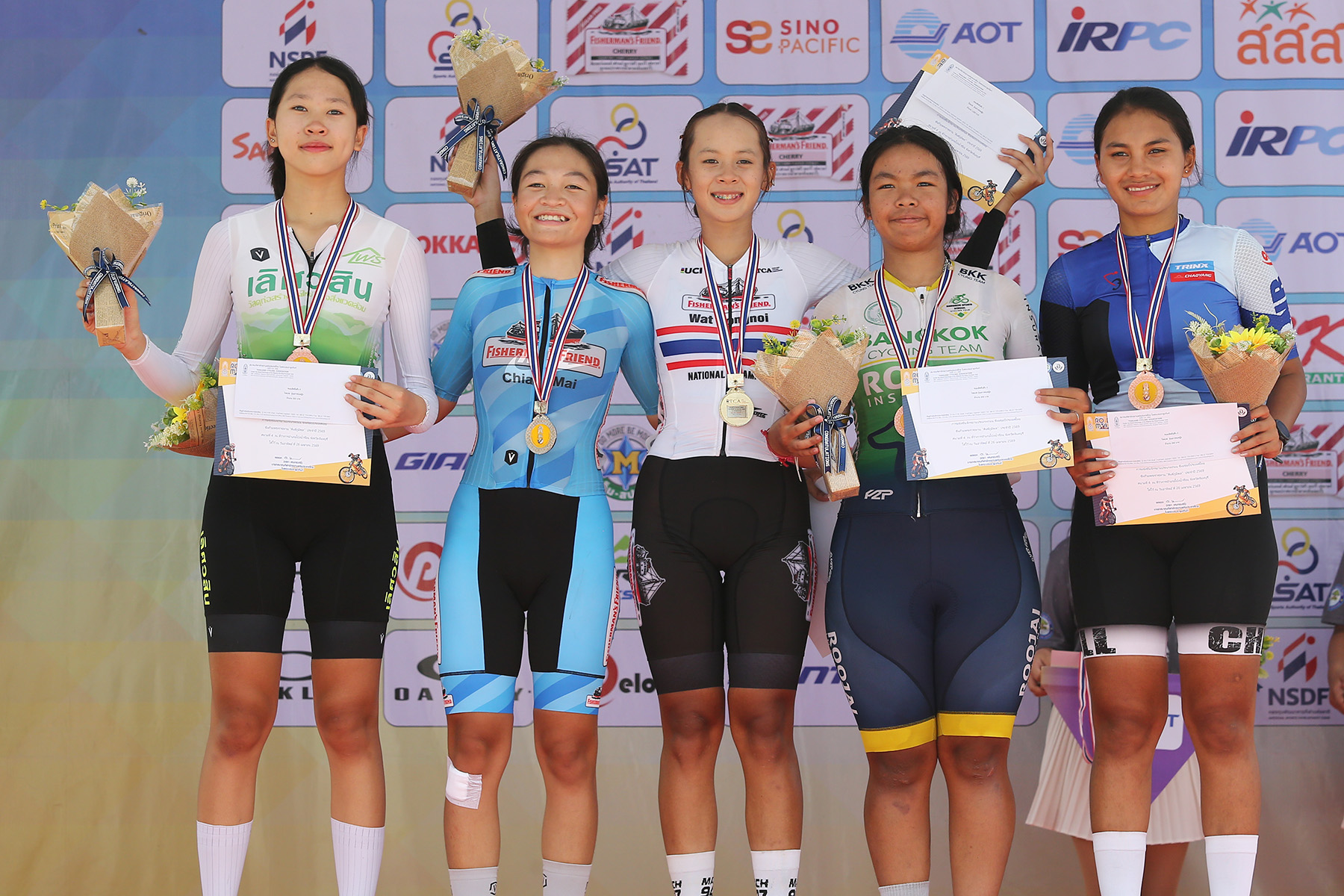 รุ่นเยาวชนหญิง (ระยะทาง 82 กม.) ที่ 1 น.ส.ภุมรัตน์ เฉลิมกิจ นักปั่นทีมชาติไทยชุดเตรียมเอเชียนเกมส์ ครั้งที่ 20 จากฟิชเชอร์แมนเฟรนด์ วัดดงน้อย เวลา 2.25.05 ชั่วโมง, ที่ 2 น.ส.กวิสรา อ่ำกำเนิด ทีมฟิชเชอร์แมนเฟรนด์ เชียงใหม่ เวลา 2.25.05 ชั่วโมง, ที่ 3 น.ส.ธัญชนก จินาภิรมย์ ทีมโรงเรียนกีฬากรุงเทพมหานคร&Roojai เวลา 2.25.06 ชั่วโมง