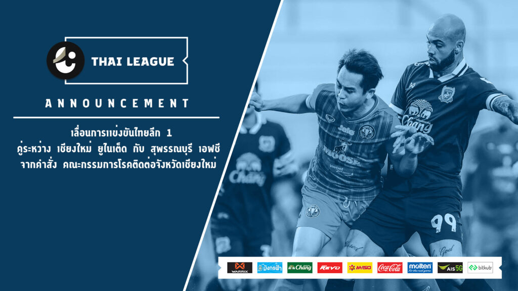 บริษัท ไทยลีก จำกัด ขอประกาศเลื่อนการแข่งขัน รีโว่ ไทยลีก 2021/22 คู่ระหว่าง เชียงใหม่ ยูไนเต็ด พบ สุพรรณบุรี เอฟซี ในวันที่ 8 มกราคม 2565 ออกไป