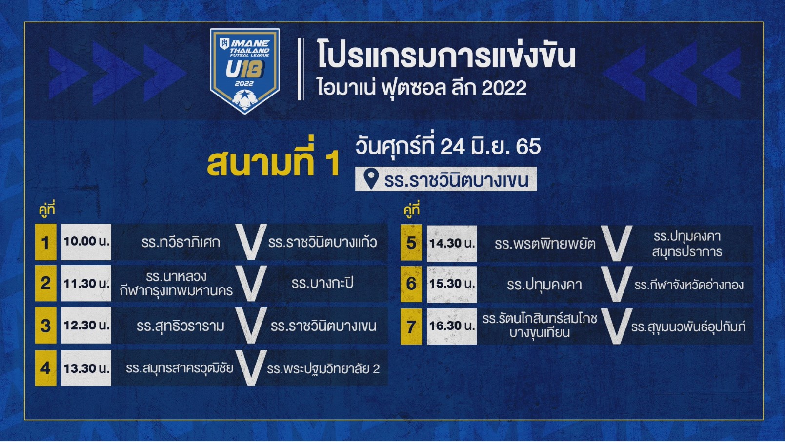 ผลจับสลากประกบคู่ “IMANE THAILAND FUTSAL LEAGUE U18 2022” เกมแรก ณ สนามฟุตซอล โรงเรียนราชวินิตบางเขน วันที่ 24 มิ.ย.2565