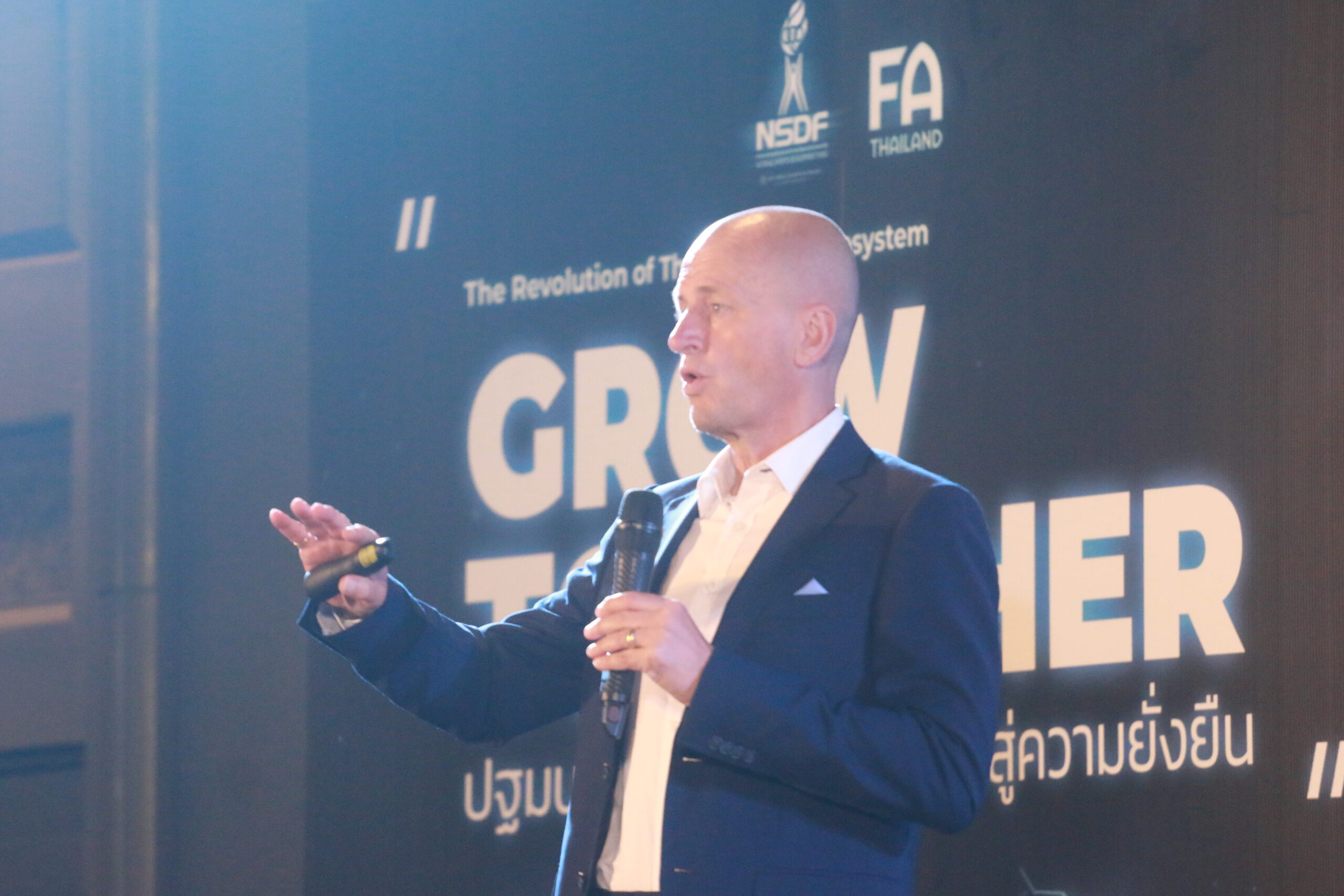 เมื่อวันที่ 29 มิถุนายน 2565 ที่ผ่านมา กองทุนพัฒนาการกีฬาแห่งชาติ (NSDF) ร่วมกับ สมาคมกีฬาฟุตบอลแห่งประเทศไทย ในพระบรมราชูปถัมภ์ (FA Thailand) จัดงานแถลงข่าวเปิดตัวโครงการ “Grow Together! ปฐมบทใหม่เพื่อฟุตบอลไทยสู่ความยั่งยืน” (The Revolution of Thai Football’s Ecosystem) ภายใต้การควบคุมมาตรฐานของ สหพันธ์ฟุตบอลนานาชาติ (FIFA) ผ่านการวิจัยและประสานงานระหว่างฝ่ายพัฒนาเทคนิคของสมาคมฯ ณ ห้องไทย จิตรลดา แกรนด์บอลรูม โรงแรมแมริออท มาร์คีส์ ควีนปาร์ค กรุงเทพฯ นับเป็นความร่วมมือครั้งประวัติศาสตร์ที่เกิดขึ้นในประเทศไทยเป็นแห่งแรก กับการจัดวางโครงสร้างการพัฒนานักกีฬาฟุตบอลเยาวชนทั้งระบบ โดยการสร้างและจัดเก็บฐานข้อมูล