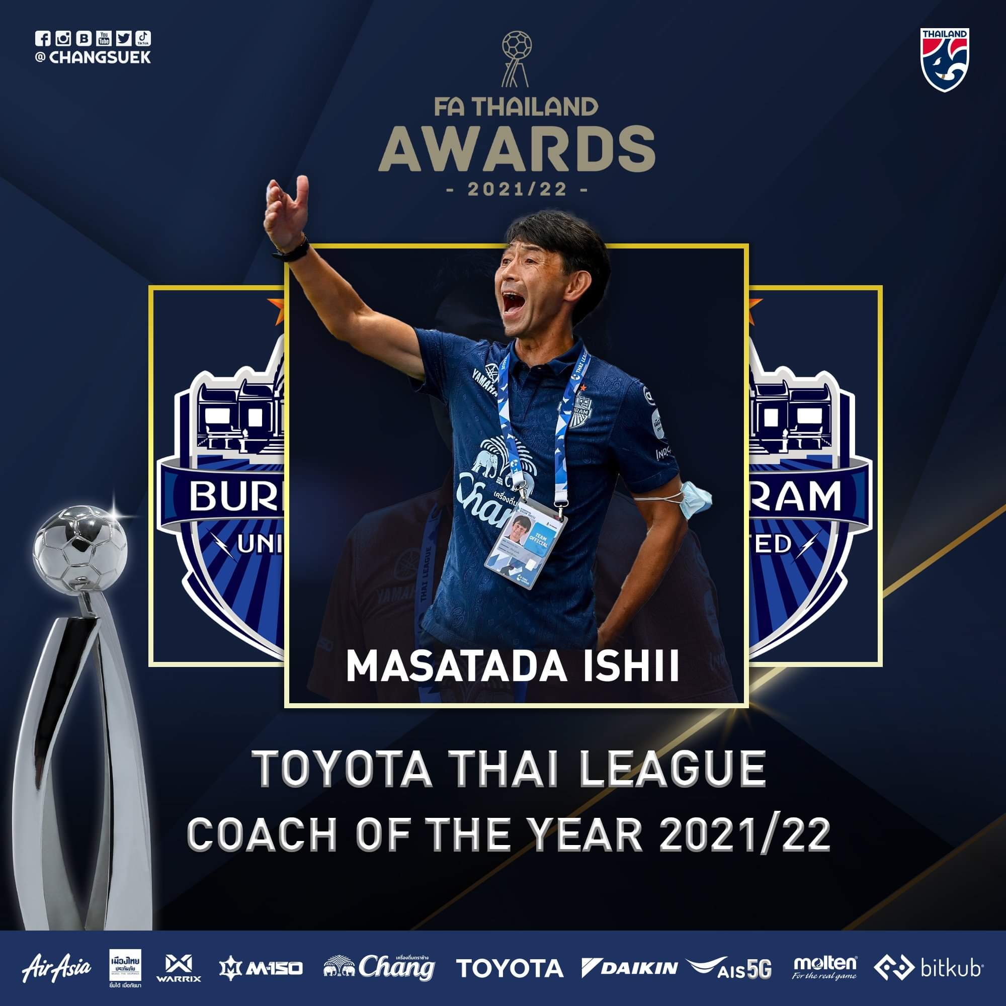 18.TOYOTA THAI LEAGUE COACH OF THE YEAR 2021/22 – รางวัลหัวหน้าผู้ฝึกสอนยอดเยี่ยม (ไทยลีก) ได้แก่ มาซาทาดะ อิชิอิ จาก สโมสร บุรีรัมย์ ยูไนเต็ด