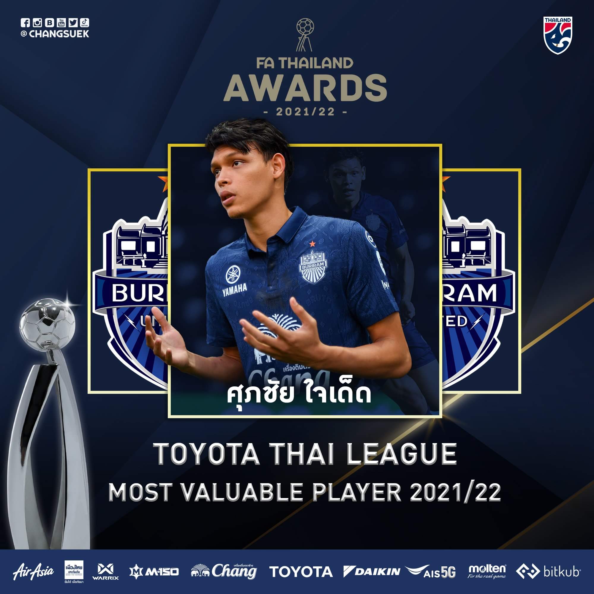 19.TOYOTA THAI LEAGUE MOST VALUABLE PLAYER 2021/22 – รางวัลผู้เล่นทรงคุณค่าแห่งปี (ไทยลีก) ได้แก่ ศุภชัย ใจเด็ด จาก สโมสร บุรีรัมย์ ยูไนเต็ด