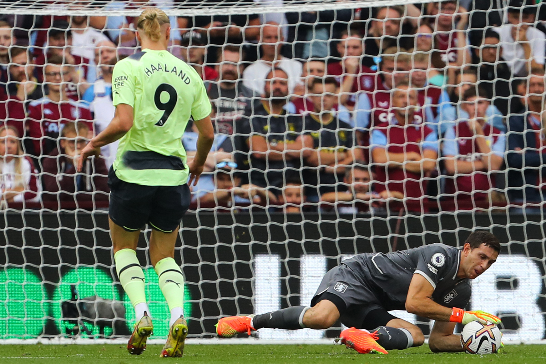 ครึ่งหลังนาทีที่ 50 ทีมเยือนลุยทันที เควิน เดอ บรอยน์ รับบอลทางด้านขวาก่อนเปิดโค้งหนีมือ เอมิลิอาโน่ มาร์ติเนซ ที่ออกมาตัดบอล เออร์ลิง ฮาลันด์ วิ่งมากระโดดแปด้วยซ้ายตุงตาข่าย แมนฯ ซิตี้ นำ 1-0