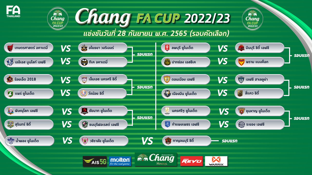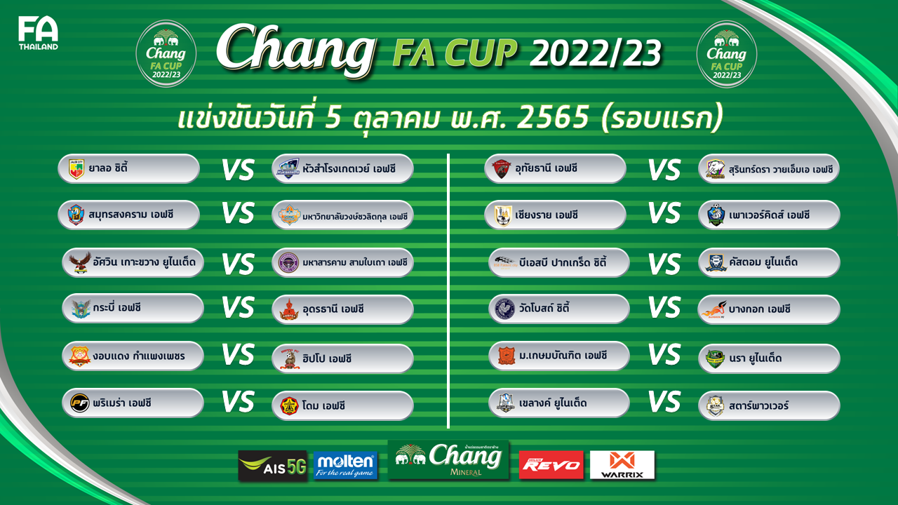 ผลจับสลากศึก ช้าง เอฟเอ คัพ รอบคัดเลือก 2022/23