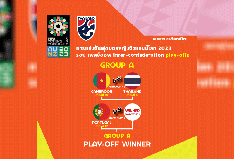 วันที่ 14 ตุลาคม 2565 สหพันธ์ฟุตบอลนานาชาติ หรือ ฟีฟ่า จัดพิธีจับสลากแบ่งสายการแข่งขันฟุตบอลหญิง 2023 FIFA World Cup Qualification Inter Confederation