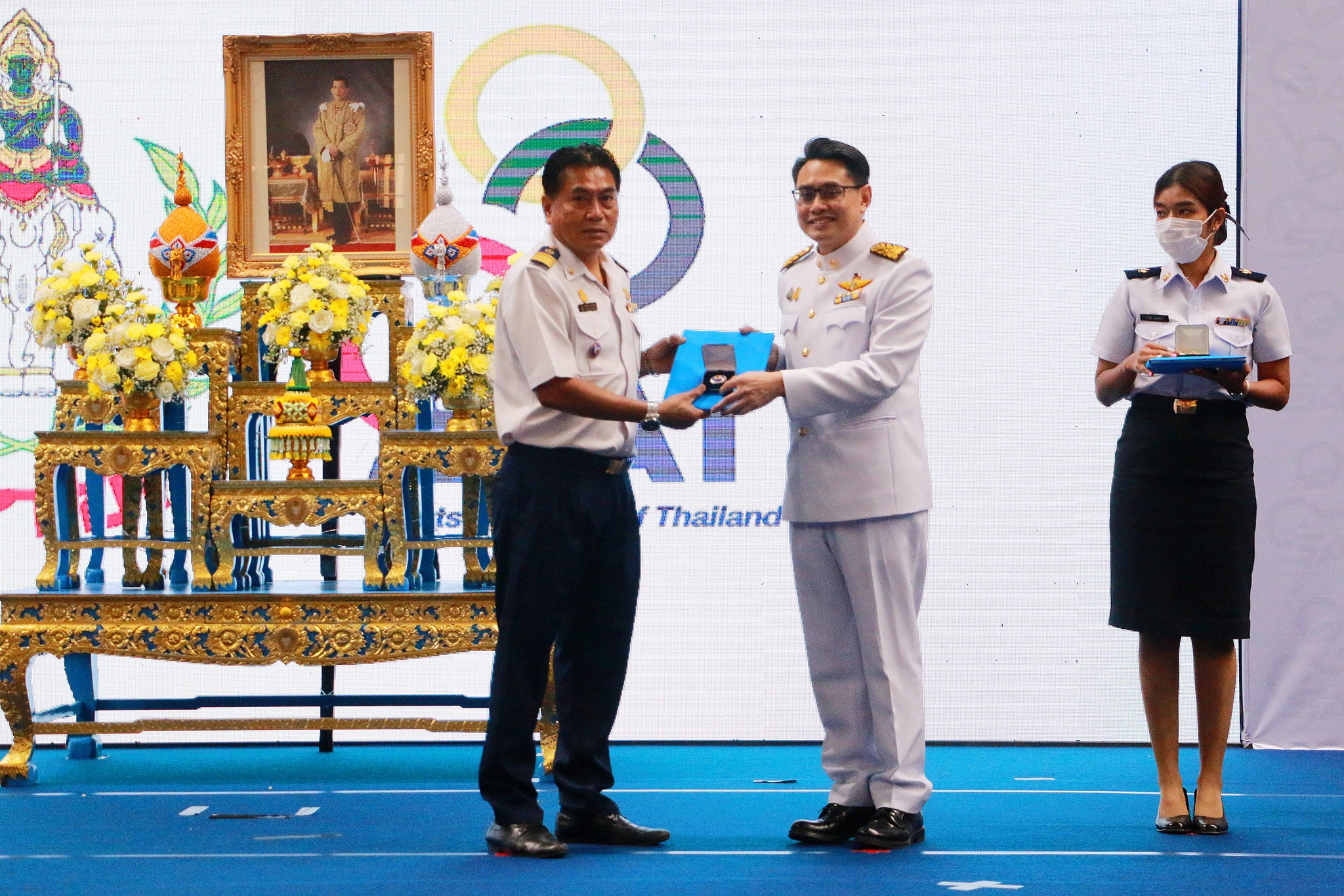 จากนั้น ในเวลา 11.00 น. ดร.ก้องศักด ยอดมณี ผู้ว่าการ กกท. เป็นประธานในพิธีมอบเครื่องราชอิสริยาภรณ์ แก่ผู้บริหารและพนักงาน กกท. ประจำปี 2564 และพิธีมอบเกียรติบัตร และเข็มวิริยะอุทิศแก่พนักงานที่ปฏิบัติงานครบ 30 ปี 25 ปี 15 ปี รวมทั้งพิธีมอบรางวัล แก่พนักงานและผู้ช่วยปฏิบัติงานฯ ที่มีผลงานดีเด่น ประจำปี 2565, รางวัล “คนต้นแบบ SAT IDOL” และรางวัล เกียรติบัตร แก่ผู้ส่งผลงานเข้าร่วมการประกวดตราสัญลักษณ์วันคล้ายวันสถาปนา กกท. ครบรอบปีที่ 58 โดยผู้ได้รับรางวัล ประกอบด้วย ผู้บริหารและพนักงาน กกท. ที่เข้ารับเครื่องราชย์อิสริยาภรณ์ มีจำนวนทั้งสิ้น 44 คน ดังนี้