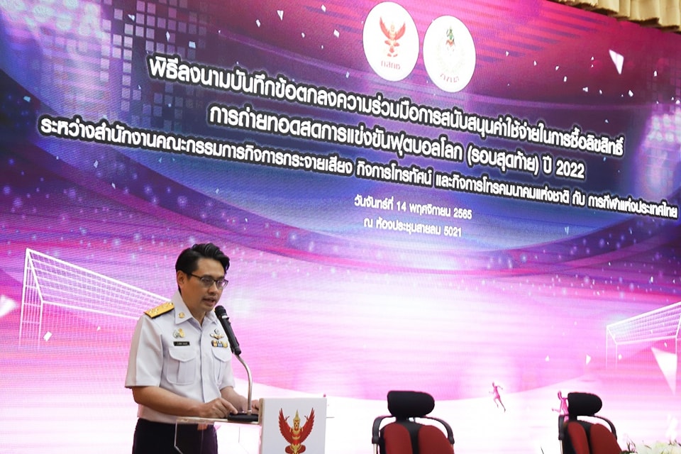 กกท. ร่วมกับ กสทช. ลงนาม MOU บันทึกข้อตกลงความร่วมมือ การสนับสนุนค่าใช้จ่ายในการซื้อลิขสิทธิ์การถ่ายทอดสดการแข่งขันฟุตบอลโลก ปี 2022
