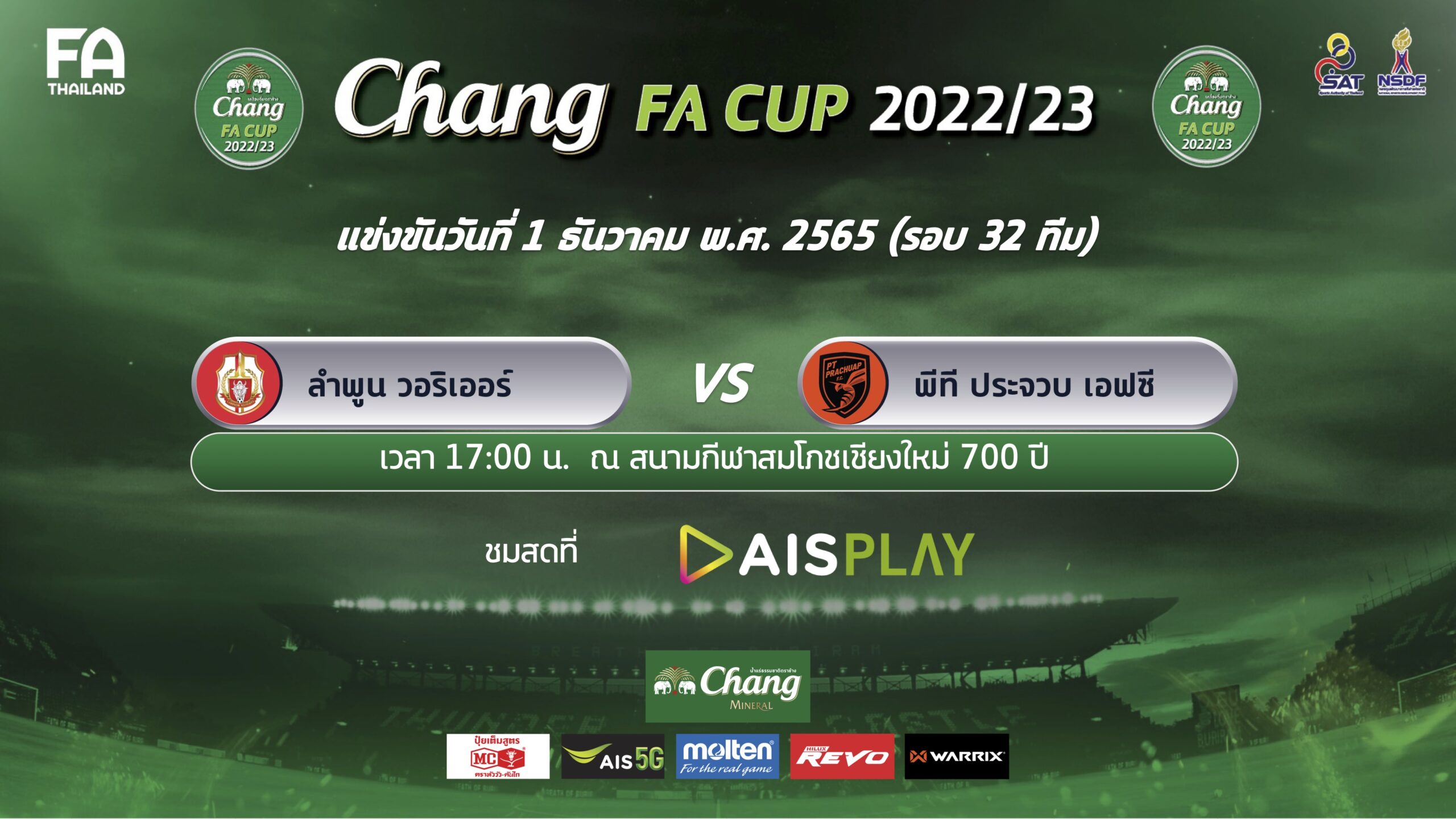 โปรแกรมการแข่งขันฟุตบอล ช้าง เอฟเอ คัพ รอบ 32 ทีมสุดท้าย วันพฤหัสบดีที่ 1 ธันวาคม 2565