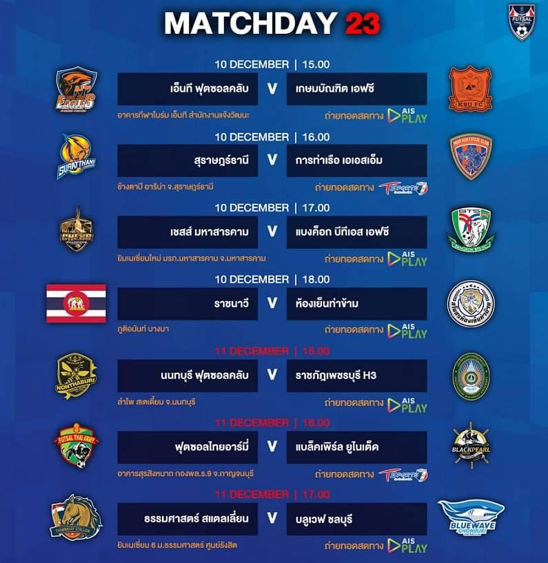 สำหรับโปรแกรมฟุตซอลไทยลีก2022 แมตซ์เดย์23 มีดังนี้