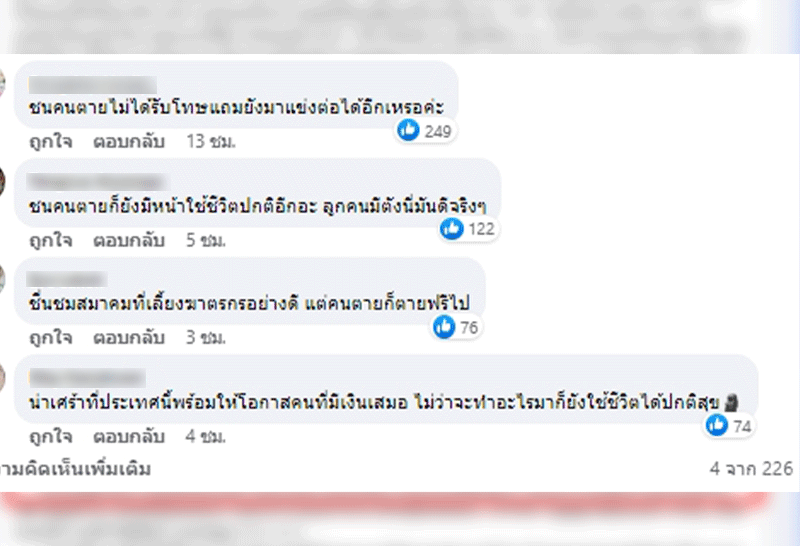 – ชนคนตายไม่ได้รับโทษแถมยังมาแข่งต่อได้อีกเหรอคะ
