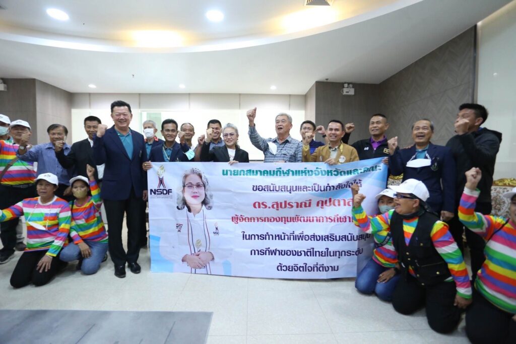 เมื่อวันที่ 28 มกราคม 2566 ผู้แทนนายกสมาคมกีฬาแห่งจังหวัดจากทั่วประเทศ พร้อมคณะ เดินทางมาขอเข้าพบ “ดร.หญิง” ดร.สุปราณี คุปตาสา ผู้จัดการกองทุนพัฒนาการกีฬาแห่งชาติ (NSDF) เพื่อให้การสนับสนุน และเป็นกำลังใจให้ในการทำหน้าที่ เพื่อส่งเสริมสนับสนุนการกีฬาของชาติไทยในทุกระดับ ที่สำนักงานกองทุนฯ ชั้น 3 อาคารเฉลิมพระเกียรติ 7 รอบพระชนมพรรษา การกีฬาแห่งประเทศไทย (กกท.) หัวหมาก