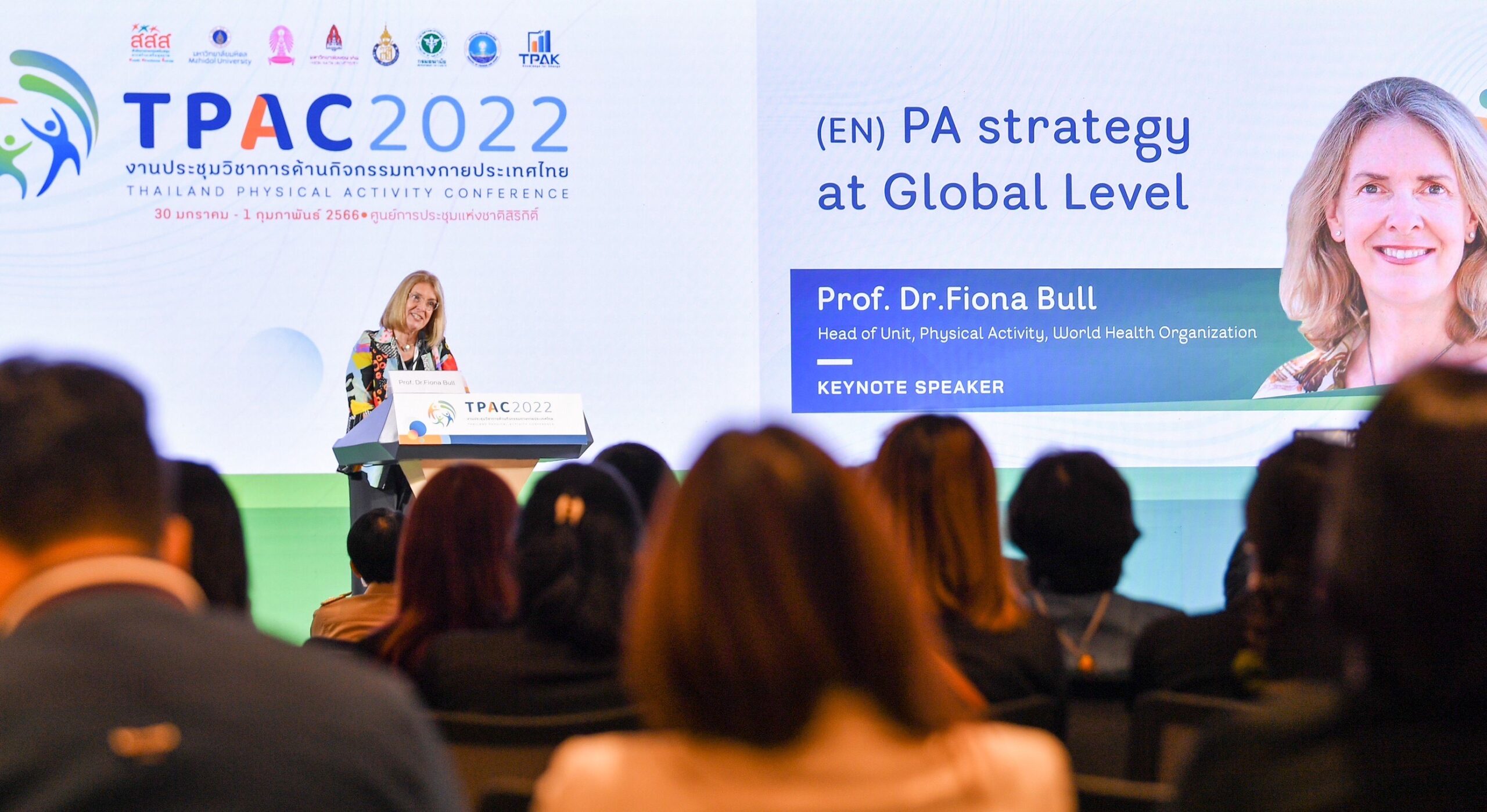 และภาคีเครือข่าย ทั้งภาครัฐ เอกชน ประชาสังคม วิชาการ ชุมชนท้องถิ่น จัดงานประชุมวิชาการด้านกิจกรรมทางกายประเทศไทย 2565 “Thailand Physical Activity Conference 2022 หรือ TPAC 2022 ครั้งที่ 1 บูรณาการความรู้เพื่อฟื้นฟูกิจกรรมทางกาย “Integrating knowledge for physical activity regeneration” ภายใต้กรอบยุทธศาสตร์การสร้างเสริมสุขภาพ 7 ด้าน 1.กิจกรรมทางกาย 2.อาหาร 3.ยาสูบ 4.แอลกอฮอล์และยาเสพติด 5.ความปลอดภัยทางถนน 6.สุขภาพจิต 7.มลพิษจากสิ่งแวดล้อม โดยเน้นความเท่าเทียมทางสุขภาพ