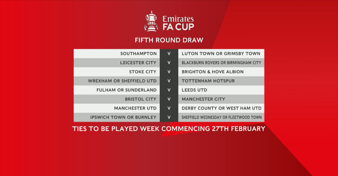 สรุปผลการจับฉลาก เอฟเอ คัพ รอบ 5 ดังนี้
