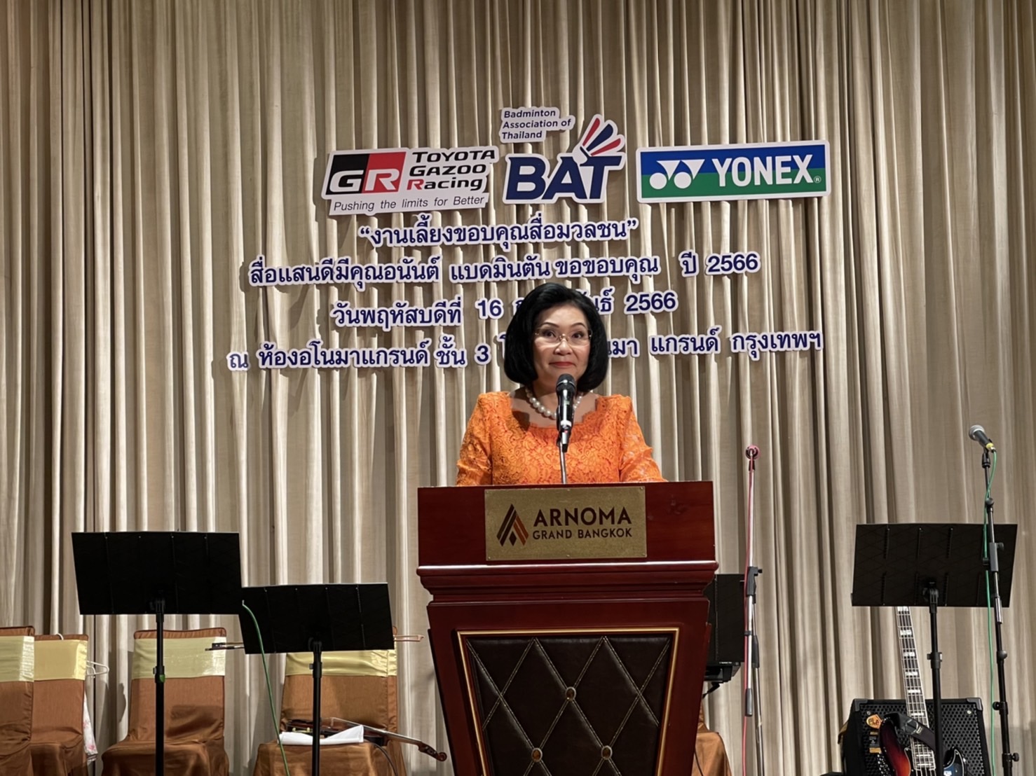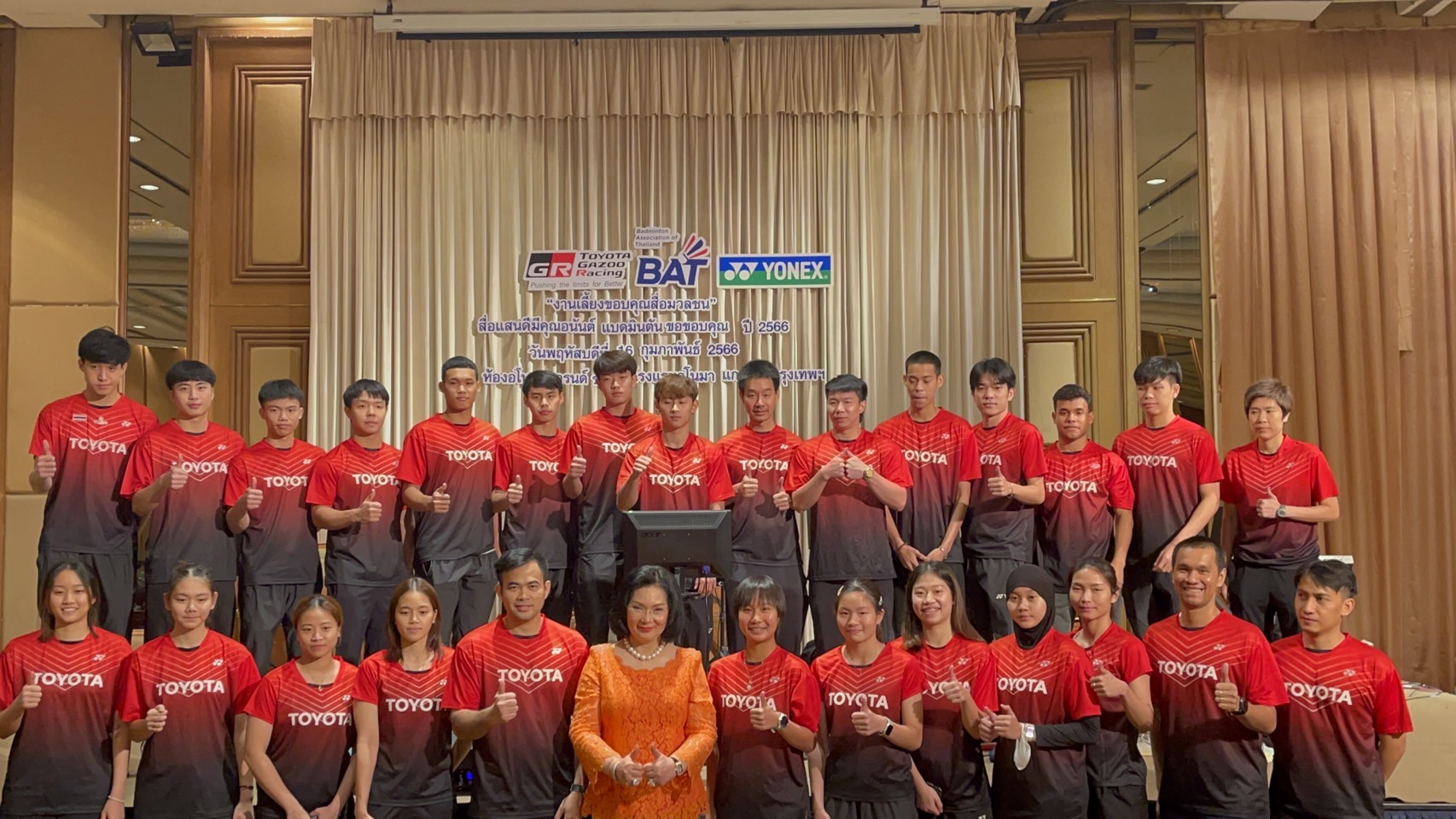 สมาคมกีฬาแบดมินตันแห่งประเทศไทย ในพระบรมราชูปภัมภ์ จัดงานเลี้ยงขอบคุณสื่อมวลชน “สื่อแสนดี มีคุณอนันต์ แบดมินตันขอขอบคุณ” ที่ห้องอโนมาแกรนด์ ชั้น 3 โรงแรมอโนมาแกรนด์ กรุงเทพฯ เมื่อวันที่ 16 กุมภาพันธ์ 2566 โดยมี คุณหญิงปัทมา ลีสวัสดิ์ตระกูล กรรมการคณะกรรมการโอลิมปิกสากล (ไอโอซี เมมเบอร์) รองประธานสหพันธ์แบดมินตันโลก (บีดับเบิลยูเอฟ) และนายกสมาคมกีฬาแบดมินตันแห่งประเทศไทยฯ เป็นประธานในงาน