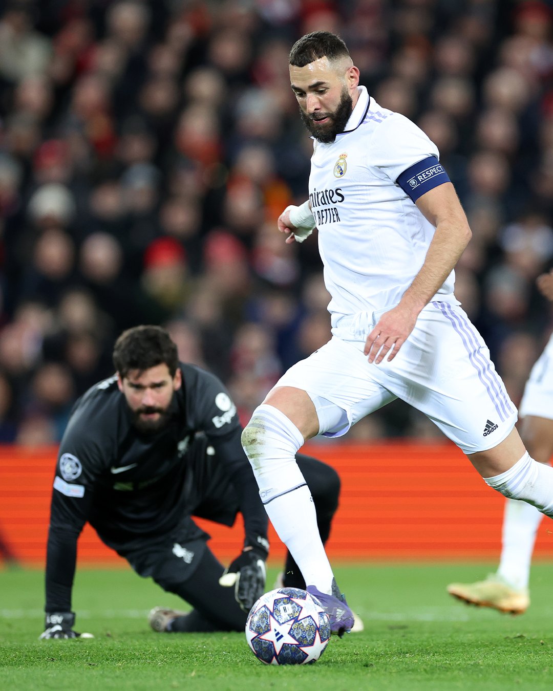 ด้านเรอัล มาดริด วางให้ คาริม เบนเซม่า กลับมายืนหน้าเป้า โดยมีวินิซิอุส และโรดรีโก คอยเสริมในตำแหน่งริมเส้นทั้งสองฝั่ง