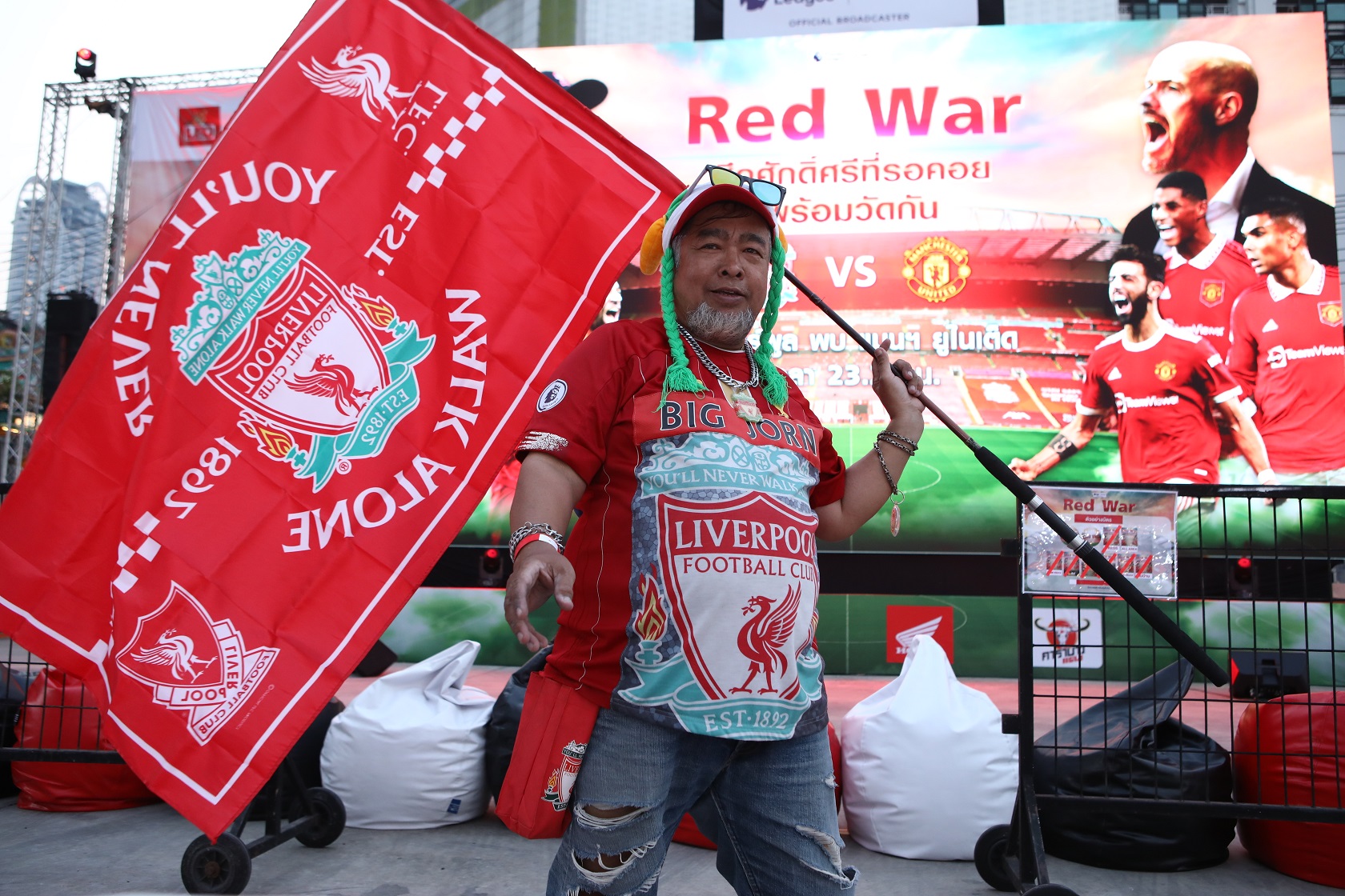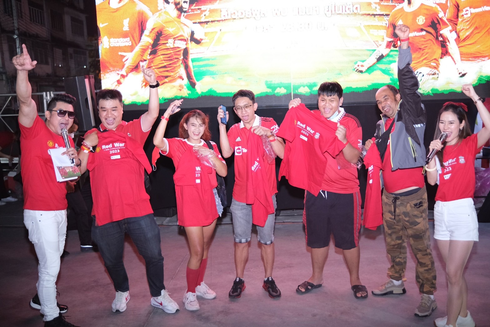 แฟนบอลทั้ง 2 ทีม เดินทางมาถึงกันตั้งแต่แดดร่มลมตก พร้อมมาร่วมลุ้นของรางวัลมากมายจากกิจกรรมต่างๆ ที่เกิดขึ้นภายในงาน ทุกคนต่างพกใจ พกเสียงชียร์กันมาเต็มที่ พร้อมส่งพลังเชียร์ทีมโปรดคู่สำคัญจากพรีเมียร์ ลีก “หงส์แดง” ปะทะ “ปีศาจแดง” ฟุตบอลอังกฤษที่ยิ่งใหญ่ ที่มีแฟนบอลติดตามมากที่สุด