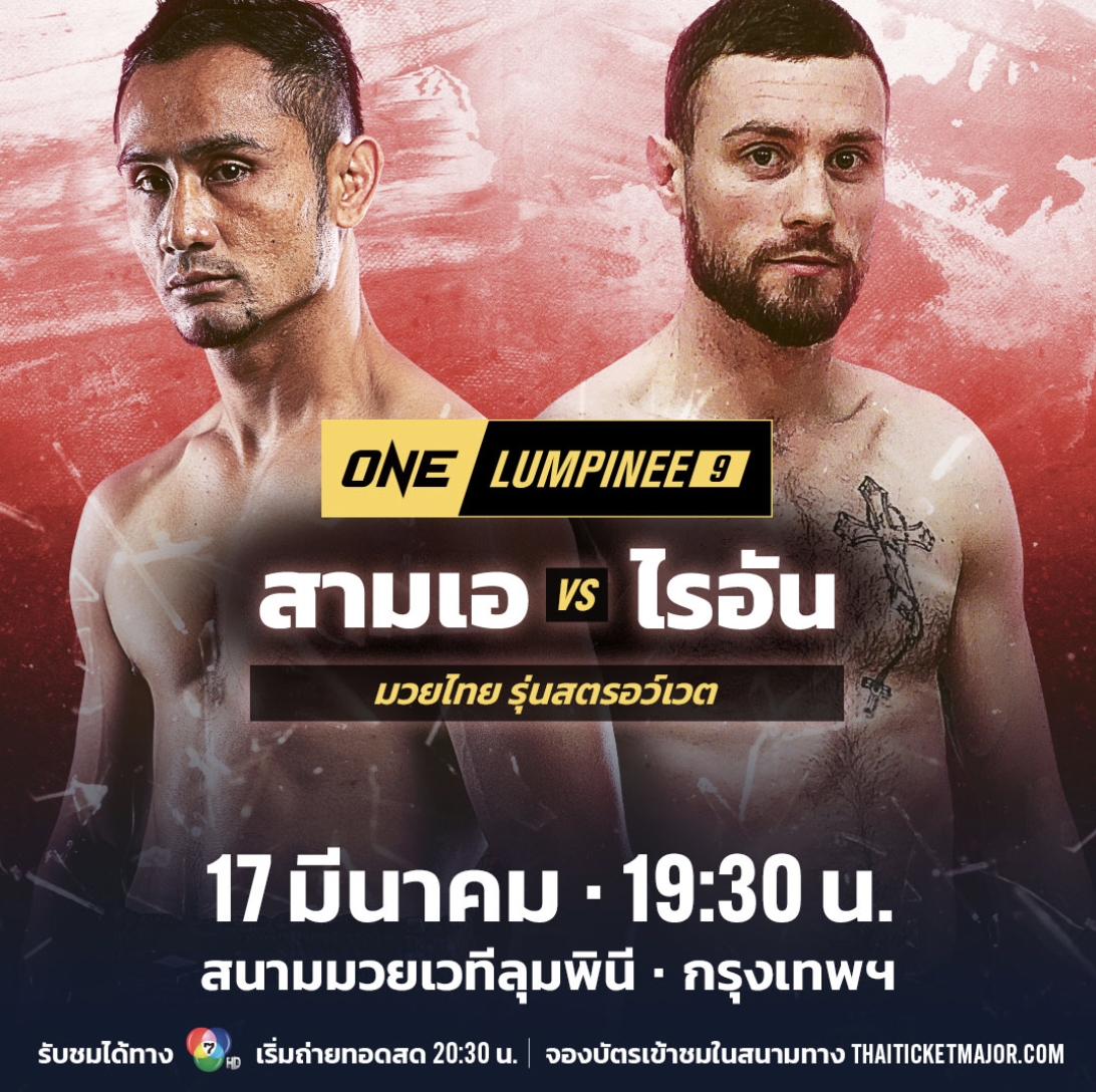 โดยด่านแรกในการกลับมาทวงบัลลังค์แชมป์โลก ONE อีกครั้ง “สามเอ” จะต้องเจอกับ “ไรอัน ซีฮาน” นักมวยชาวไอริช ดีกรีแชมป์โลกมวยไทย WBC ในศึก ONE ลุมพินี 9 ในวันศุกร์ที่ 17 มีนาคมนี้