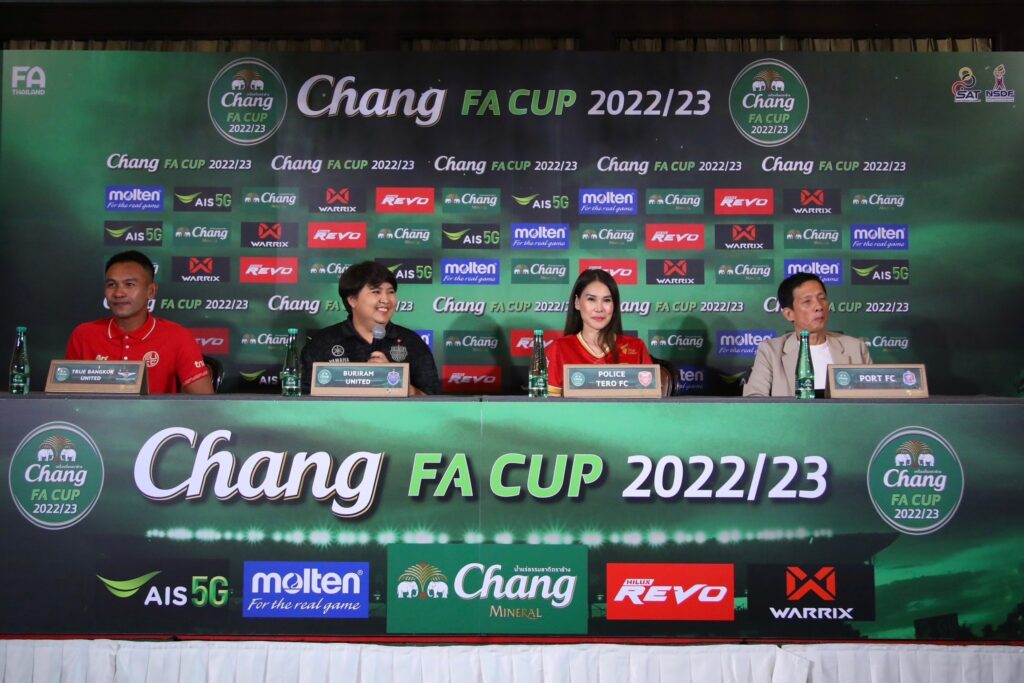 โดย “ช้าง เอฟเอ คัพ 2022/23” มี 4 ทีมผ่านเข้ารอบรองชนะเลิศ ได้แก่ บุรีรัมย์ ยูไนเต็ด, โปลิศ เทโร เอฟซี, ทรู แบงค็อก ยูไนเต็ด และการท่าเรือ เอฟซี ในงานวันนี้มีการแถลงข่าวเตรียมความพร้อมของทั้ง 4 สโมสรก่อนการจับสลากประกบคู่