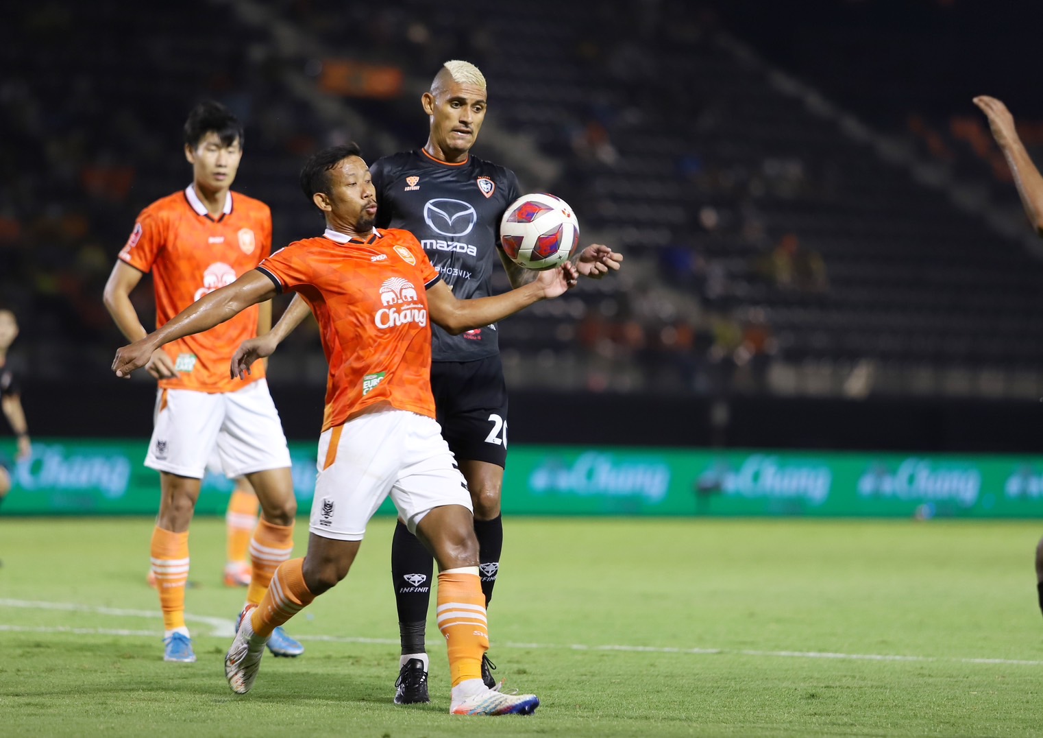 แต่นาทีที่ 28 ทีมเยือนมาตีเสมอได้จากลูกลักไก่ยิงไกลของ สหรัฐ กันยะโรจน์ พุ่งเสียบเสาแรกเข้าไปชนิดที่ กัมพล ปฐมอรรฆย์กุล ไม่ทันระวัง ใหเสกอร์เสมอ 1-1 และจบครึ่งแรกด้วยสกอร์นี้