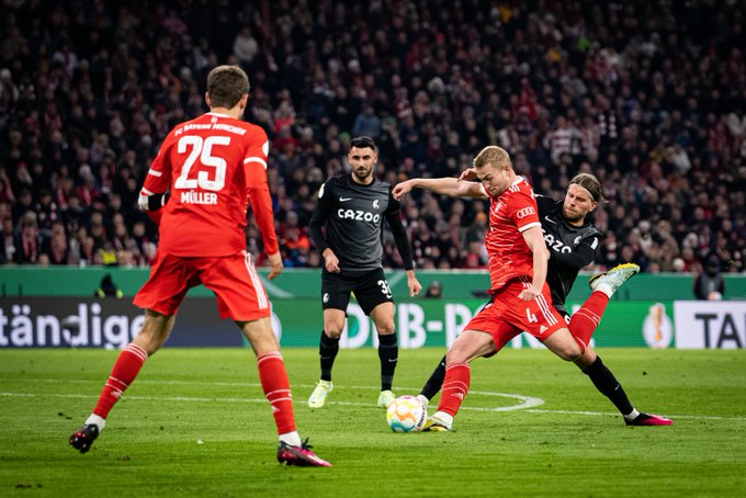 ศึกฟุตบอลเดเอฟเบ โพคาล รอบก่อนรองชนะเลิศ ที่ สนาม อลิอันซ์ อารีน่า เมื่อคืนวันอังคารที่ 4 เมษายน 2566 ที่ผ่านมา ระหว่าง เสือใต้ บาเยิร์น มิวนิค เปิดบ้านต้อนรับการมาเยือน ไฟรบวร์ก
