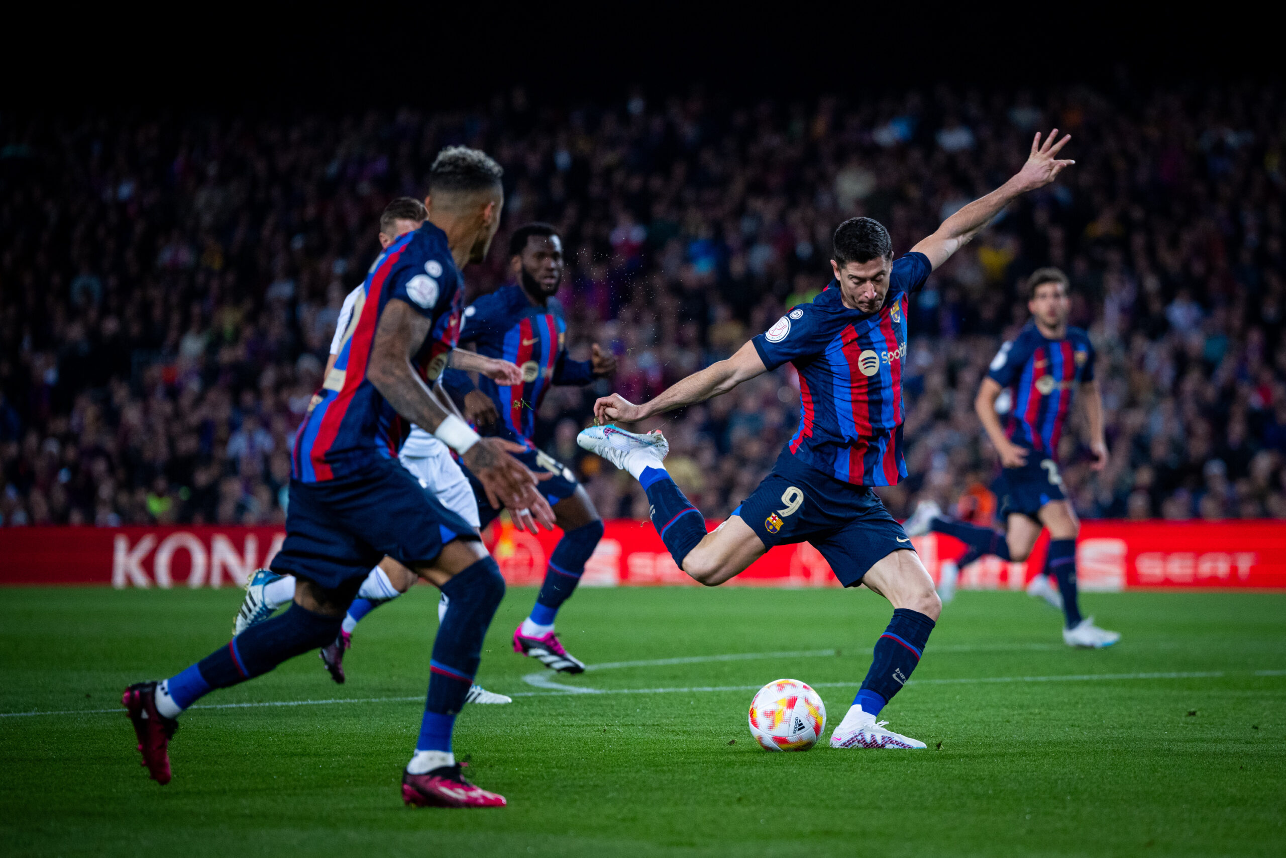 เกมนี้ บาร์เซโลนา เลือกใช้ ราฟินญ่า, โรเบิร์ต เลวานดอฟสกี้ และ กาบี้ เป็นสามประสานแนวรุก