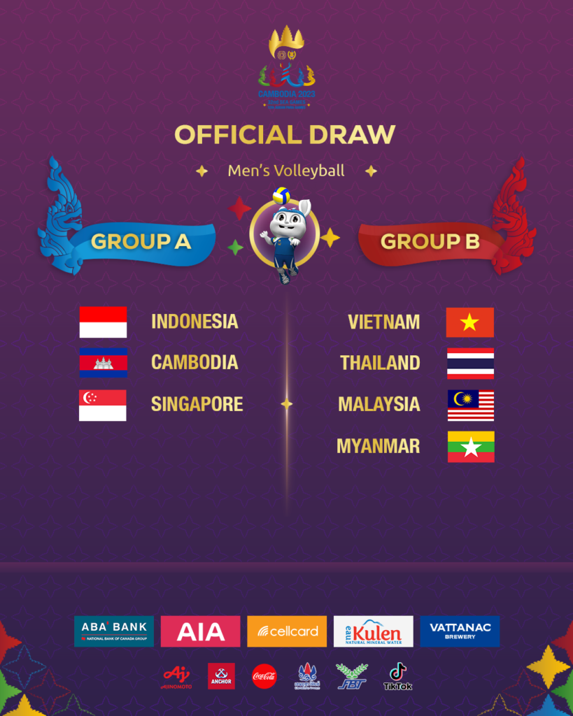 วอลเลย์บอลสาวไทย ร่วมกลุ่ม อินโดนีเซีย, เมียนมา และ มาเลเซีย ด้านทีมชาย อยู่กับ เวียดนาม, มาเลเซีย ศึกวอลเลย์บอลซีเกมส์ ครั้งที่ 32 ที่กัมพูชา