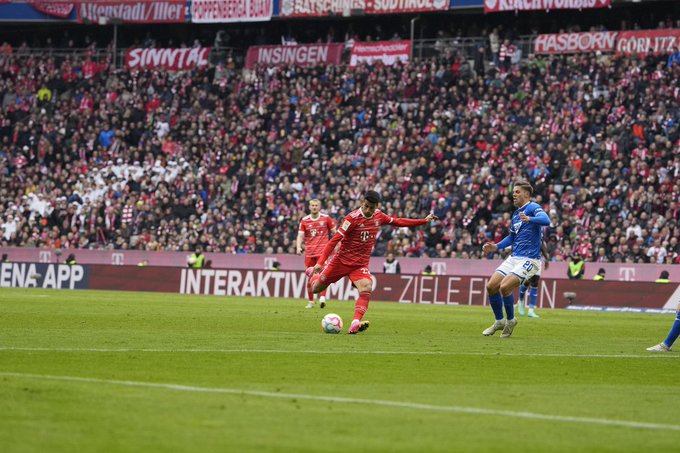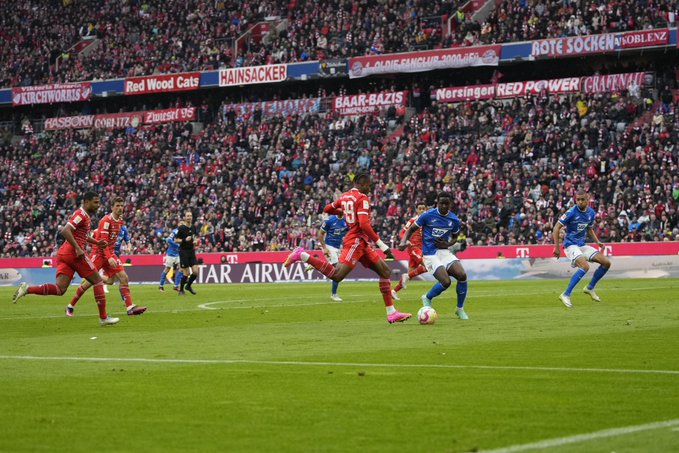 ศึกฟุตบอลบุนเดสลีกา ที่ สนาม อลิอันซ์ อารีน่า เมื่อคืนวันเสาร์ ที่ 15 เมษายน 2566 ที่ผ่านมา ระหว่าง เสือใต้ บาเยิร์น มิวนิค เปิดบ้านต้อนรับการมาเยือนของ ฮอฟเฟนไฮม์