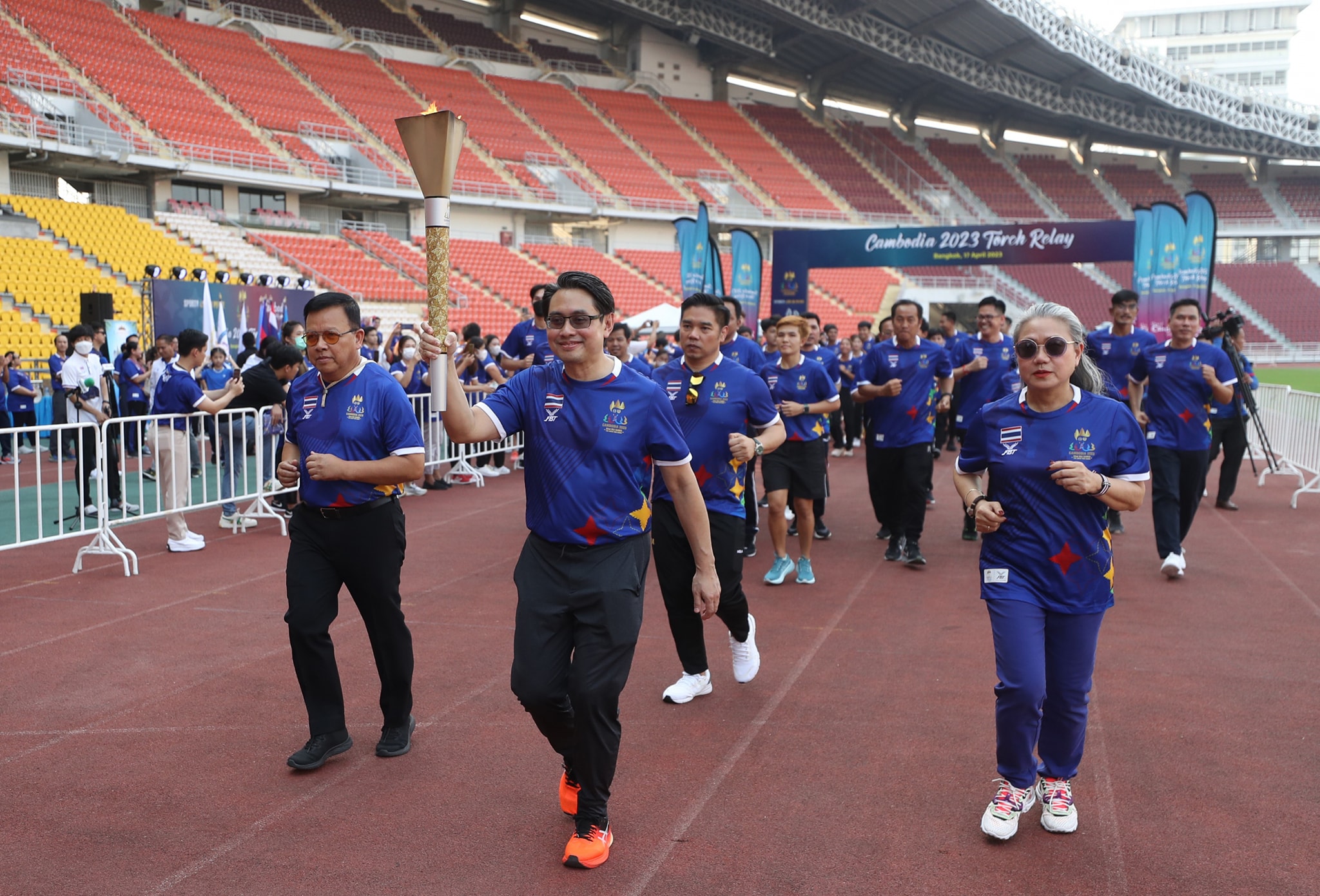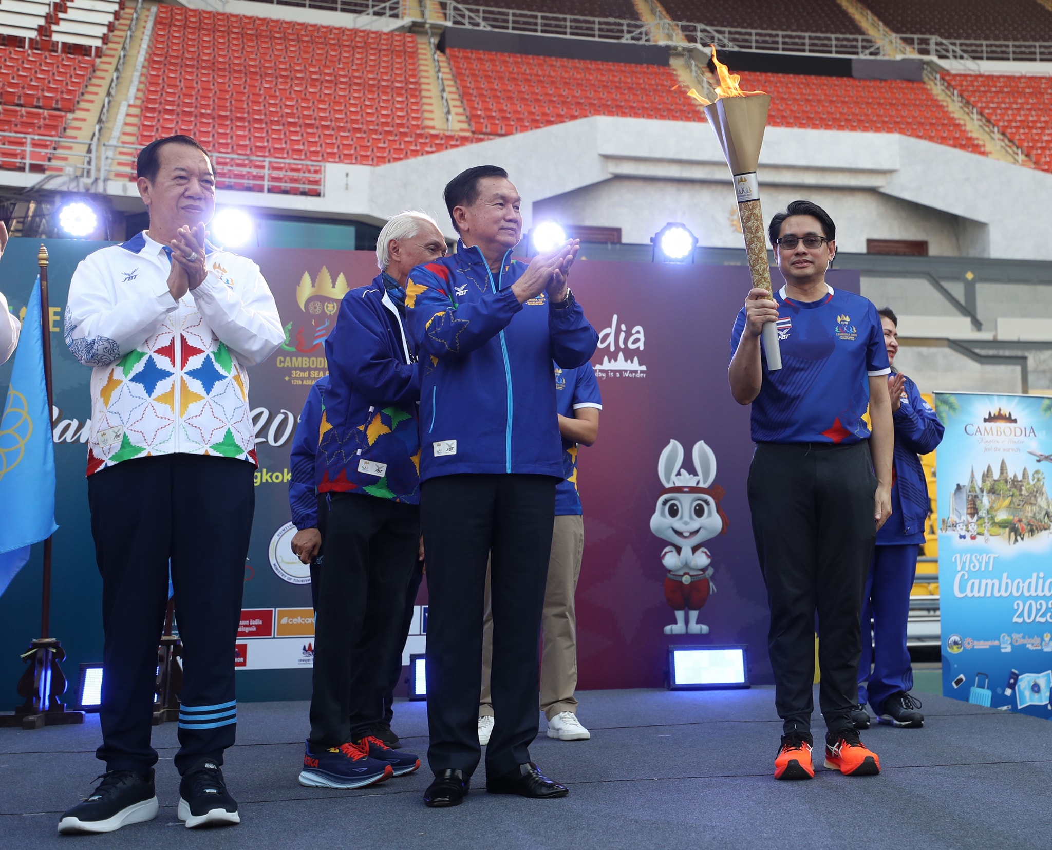 มร.ฮอร์ สารัน รัฐมนตรีช่วยว่าการกระทรวงการท่องเที่ยวและทูตพิเศษของคณะกรรมการจัดการแข่งขันซีเกมส์ของกัมพูชา พร้อมด้วย นายกองเอก ชัยภักดิ์ ศิริวัฒน์ ประธานคณะกรรมการบริหารและหัวหน้าสำนักงานซีเกมส์ และรองประธานคณะกรรมการโอลิมปิคแห่งประเทศไทยฯ, H.E. Mr.Hun Saroeun เอกอัครราชทูตกัมพูชาประจําประเทศไทย และพลเอก วิชญ์ เทพหัสดิน ณ อยุธยา เลขาธิการคณะกรรมการโอลิมปิคแห่งประเทศไทยฯ เป็นประธานร่วมในพิธีเปิดกิจกรรม “Torch Relay of The 32nd SEA Games and The 12th ASEAN Para Games”
