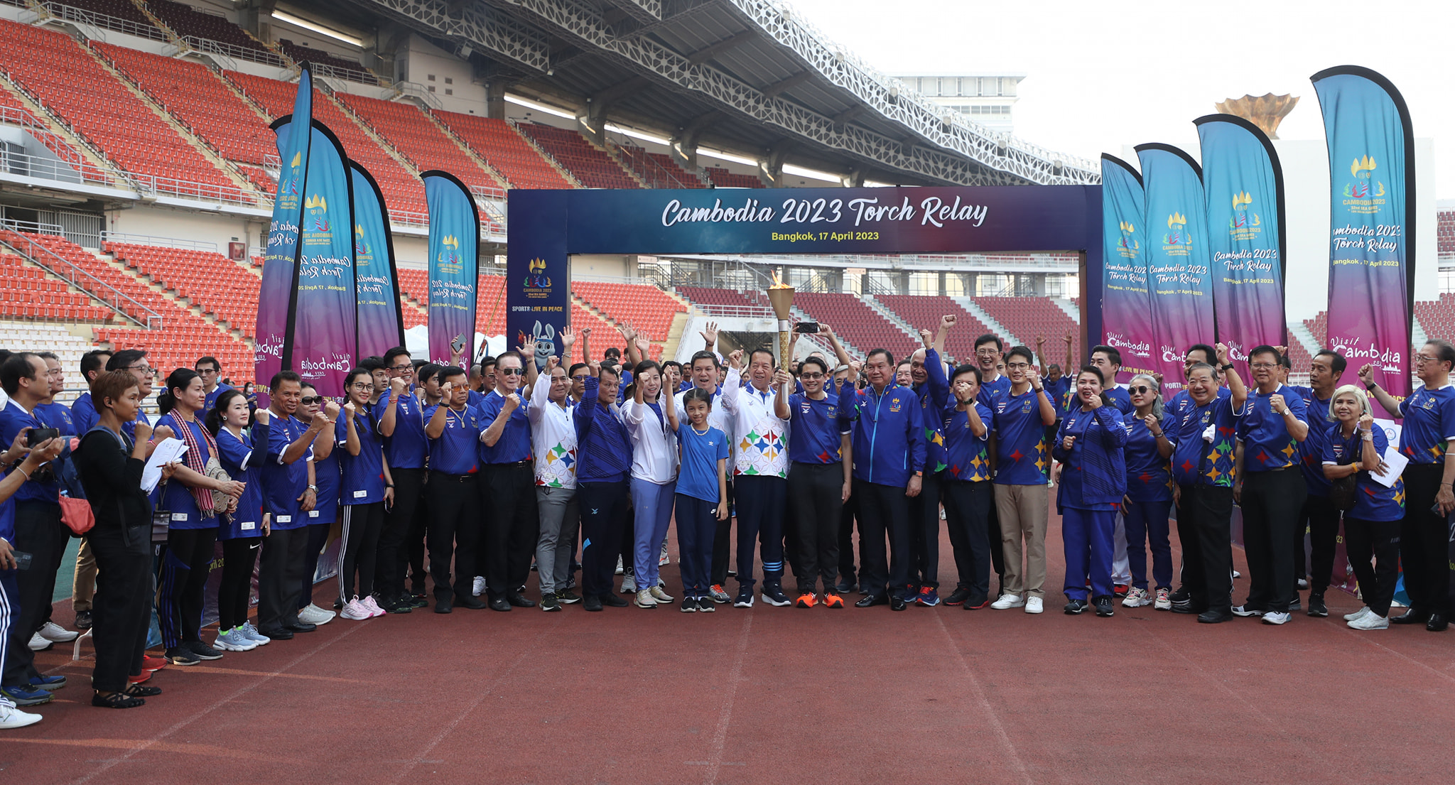 มร.ฮอร์ สารัน รัฐมนตรีช่วยว่าการกระทรวงการท่องเที่ยวและทูตพิเศษของคณะกรรมการจัดการแข่งขันซีเกมส์ของกัมพูชา พร้อมด้วย นายกองเอก ชัยภักดิ์ ศิริวัฒน์ ประธานคณะกรรมการบริหารและหัวหน้าสำนักงานซีเกมส์ และรองประธานคณะกรรมการโอลิมปิคแห่งประเทศไทยฯ, H.E. Mr.Hun Saroeun เอกอัครราชทูตกัมพูชาประจําประเทศไทย และพลเอก วิชญ์ เทพหัสดิน ณ อยุธยา เลขาธิการคณะกรรมการโอลิมปิคแห่งประเทศไทยฯ เป็นประธานร่วมในพิธีเปิดกิจกรรม “Torch Relay of The 32nd SEA Games and The 12th ASEAN Para Games”