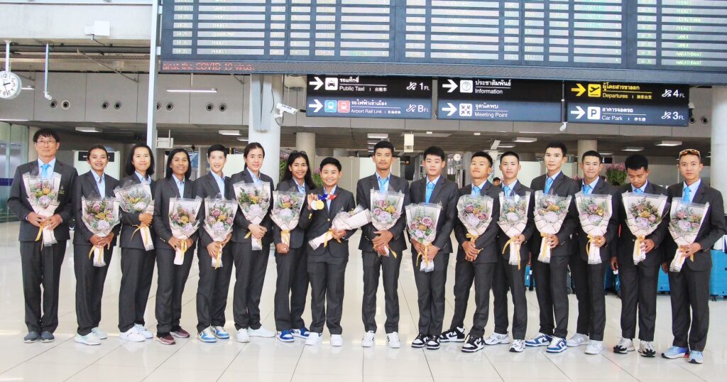 “บีซ” จุฑาธิป มณีพันธุ์ นำทัพนักปั่นประเภทถนนทีมชาติไทยเดินทางกลับถึงบ้าน พร้อมผลงาน 1 เหรียญทอง และ 1 เหรียญเงิน จากการแข่งขันกีฬาซีเกมส์ ครั้งที่ 32 ที่กัมพูชา