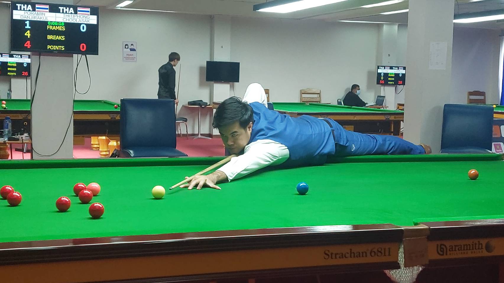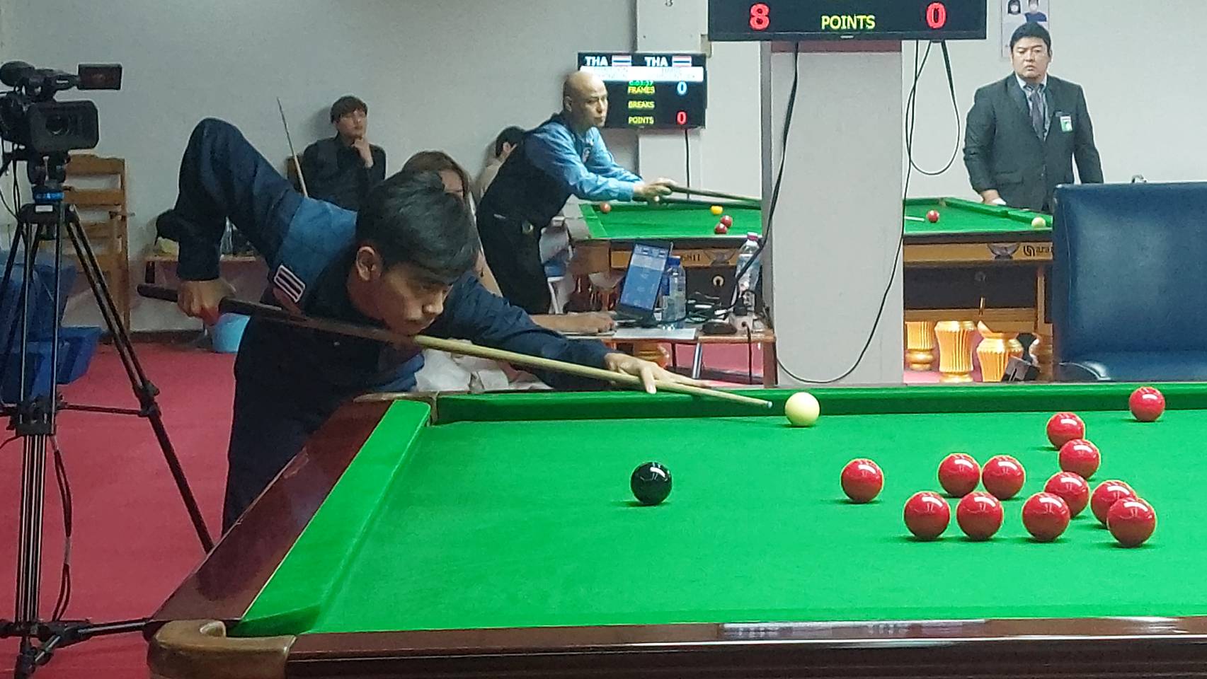 ไฮไลท์ของการแข่งขันเป็นกันพบกันระหว่าง ปรมินทร์ ด่านจิรกุล (นุ้ก คอนหวัน) ที่เพิ่งจะคว้าเหรียญทองแดงในการแข่งขันกีฬาซีเกมส์ เมื่อ 2 สัปดาห์ที่แล้วที่ประเทศกัมพูชา พบกับ ฐิติพงศ์ จุลศักดิ์ (นัท เอสอาร์ ) คู่นี้โมเมนตั้ม เป็นทางด้าน “นุ้ก คอนหวัน” เหนือกว่ามาก ทั้งความแม่นและการควบคุมลูกขาวทำได้ดีกว่าอย่างเห็นได้ชัด