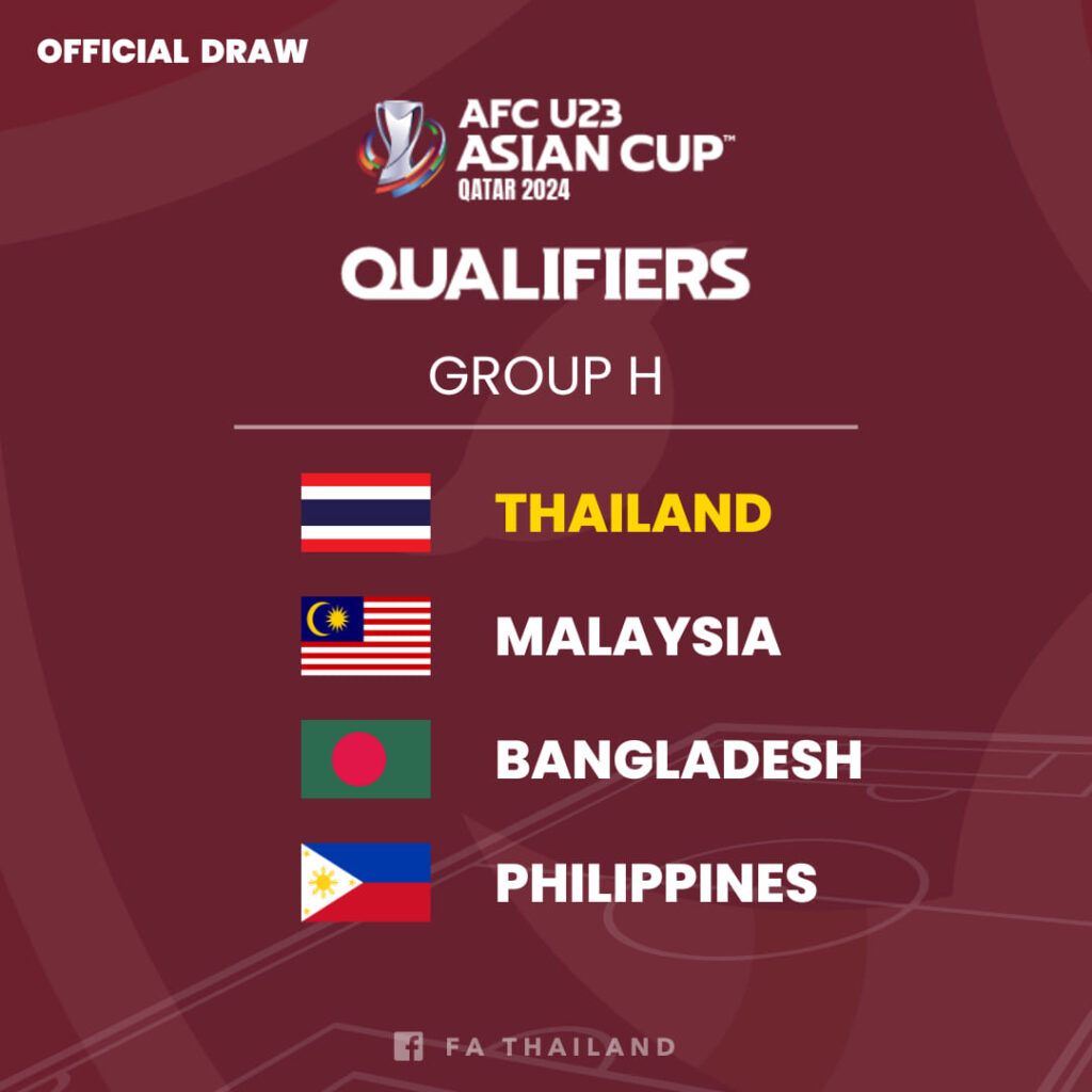 ทีมชาติไทย U23 อยู่กลุ่มเอช ร่วม มาเลเซีย,บังกลาเทศ,ฟิลิปปินส์ ศึกชิงแชมป์เอเชีย รอบคัดเลือก