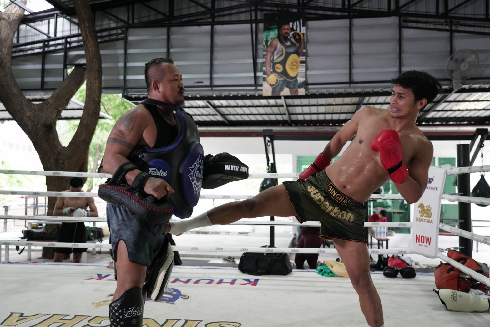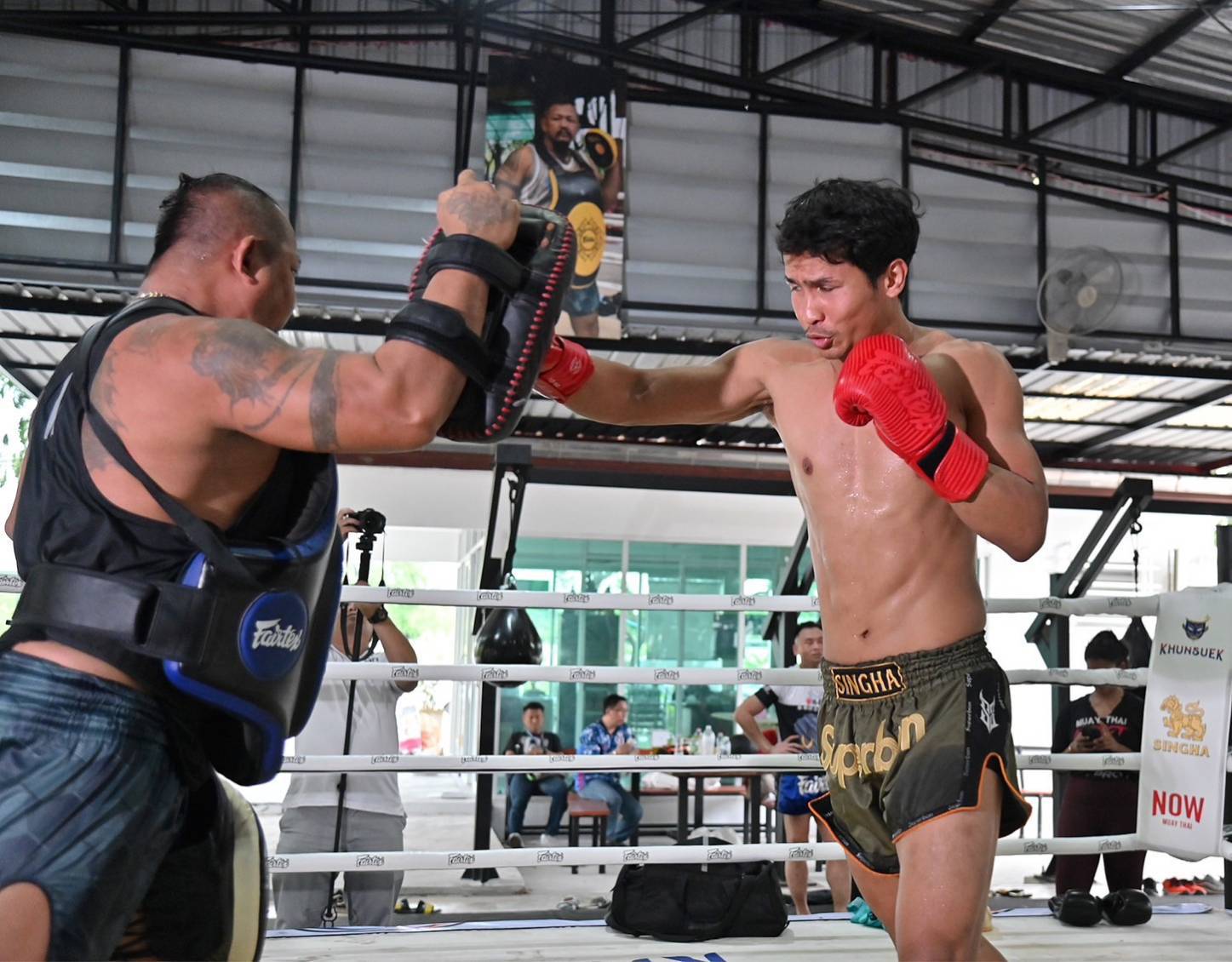 เมื่อช่วงเย็นวันอังคารที่ 30 พ.ค. “ซุปเปอร์บอน” ได้เปิดยิม ซุปเปอร์บอน เทรนนิง แคมป์ ซอยโยธินพัฒนา 3 กรุงเทพฯ เพื่อต้อนรับสื่อมวลชนที่มาสัมภาษณ์และเก็บบรรยากาศการฝึกซ้อมในช่วงโค้งสุดท้าย โดยมี สุทัศน์ ม่วงมัน หรือเทรนเนอร์เก เทรนเนอร์คู่ใจดูแลติวเข้มการฟิตซ้อม