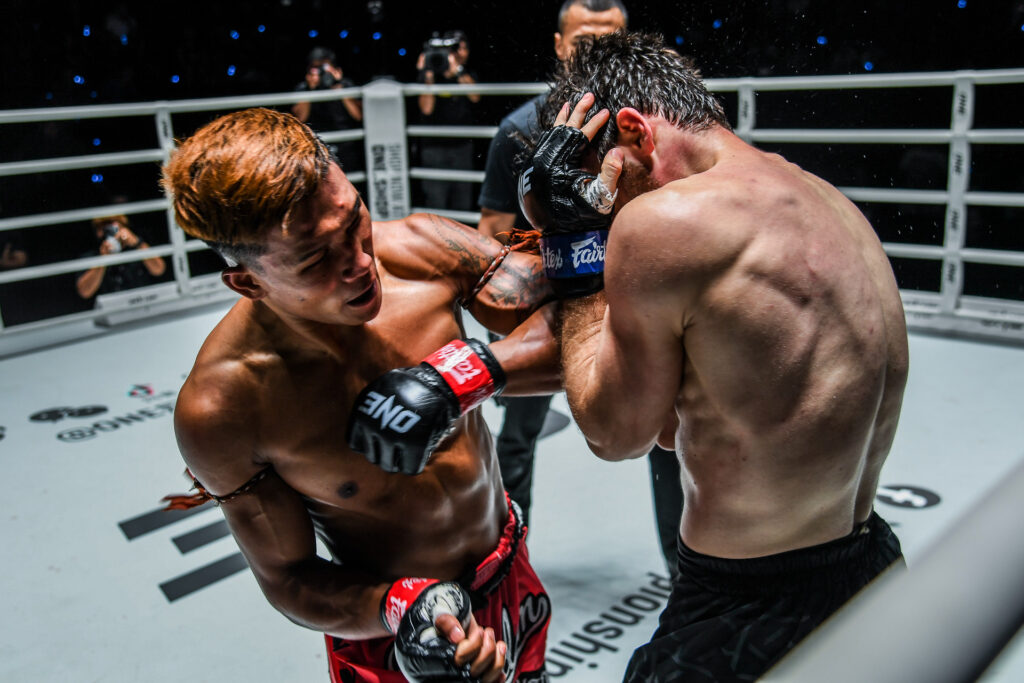 “ซ้ายอุกกาบาต” กุหลาบดำ สจ.เปี๊ยกอุทัย มวยซ้ายแกร่ง วัย 24 ปี จากสุรินทร์ คืนฟอร์มเก่ง ทุ่มสุดแรงชนะ “อิลยาส” สมใจในศึก ONE ลุมพินี 19