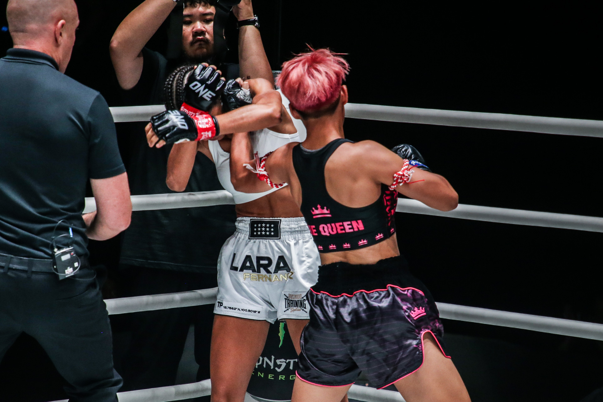 อีกหนึ่งไฮไลต์คือการปรากฏตัวครั้งแรกใน ONE ของนักมวยสาวแกร่ง เพชรจีจ้า ลูกเจ้าพ่อโรงต้ม ที่ไต่เต้าขึ้นมาจากศึก ONE ลุมพินี พิสูจน์ฝีมือกับคู่ชกสาวชาวสเปน ลารา เฟอร์นานเดซ ในกติกามวยไทย รุ่นอะตอมเวต 105-115 ปอนด์