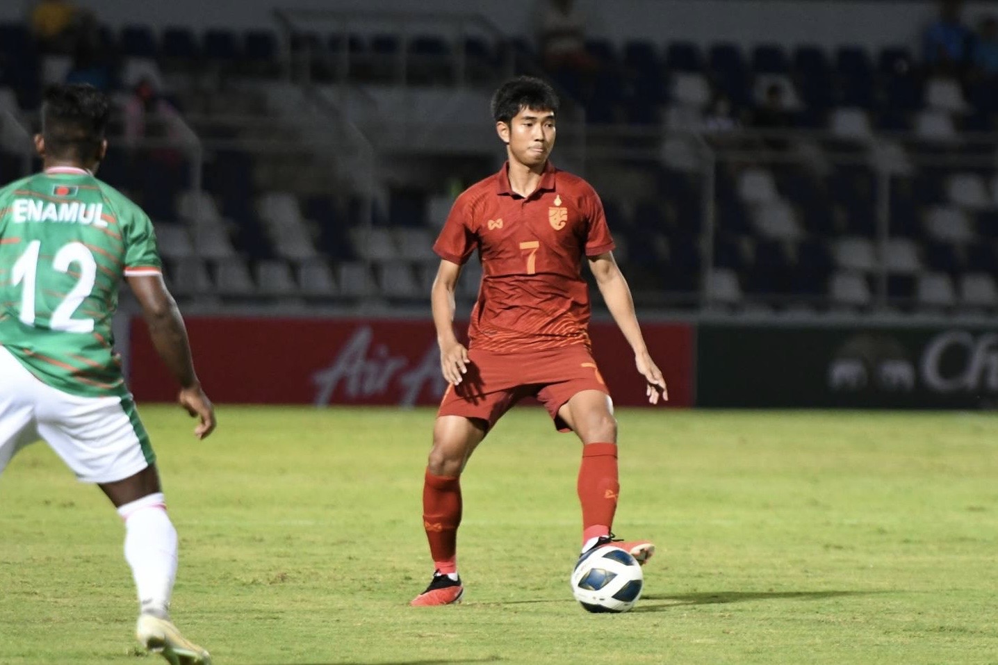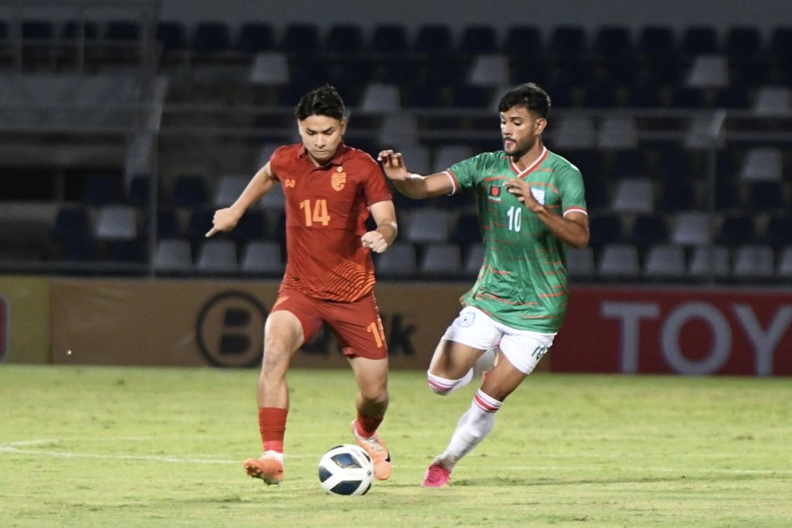 ศึกฟุตบอลชิงแชมป์เอเชีย รุ่นอายุไม่เกิน 23 ปี รอบคัดเลือก กลุ่ม เอช นัดที่สอง ที่ สนาม ชลบุรี สเตเดียม เมื่อคืนวันเสาร์ที่ 9 เดือนกันยายน 2566 ที่ผ่านมา ระหว่าง ช้างศึก ทีมชาติไทย ลงสนามพบกับ ทีมชาติบังกลาเทศ