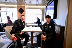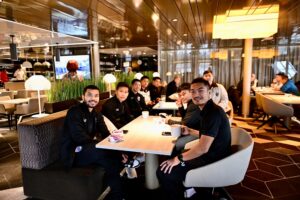 โดยบรรยากาศการเดินทาง นักกีฬา และทีมงานทุกคน นั่งเรือเฟอร์รี บนชั้น Business Lounge ที่มีความสะดวก สบาย เพียบพร้อมไปด้วยสิ่งอำนวยความสะดวก และอาหารมากมาย