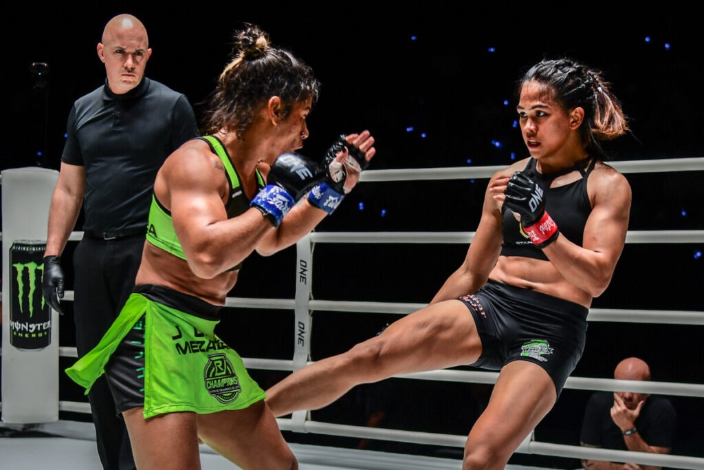 ทางด้าน “เดนิส แซมโบอันกา” สาวนักสู้จากแดนตากาล็อก เจ้าของเก้าอี้เบอร์สองของแรงกิง ONE MMA รุ่นอะตอมเวต เข้ามาเปิดตัวใน ONE ครั้งแรกในศึก ONE:MARK OF GREATNESS เมื่อเดือน ธ.ค.62 โดยสามารถเอาชนะคะแนน “จีฮิน รัดซวน” ไปได้ โดยปัจจุบันเธอผ่านประสบการณ์แข่งขันใน ONE มาแล้วถึง 7 ไฟต์ และสามารถเก็บชัยไปได้ถึง 5 ครั้งด้วยกัน