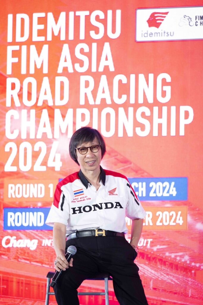 ดร.อารักษ์ พรประภา ประธาน บริษัท ไทยฮอนด้า จำกัด กล่าวในงานแถลงข่าวการจัดการแข่งขัน เอเชีย โร้ด เรซซิ่ง แชมเปี้ยนชิพ 2024 ณ สโมสรราชพฤกษ์ กรุงเทพฯ เมื่อวันอังคารที่ 20 กุมภาพันธ์ ที่ผ่านมา โดยมีใจความสำคัญส่วนหนึ่งว่า “ฮอนด้ามีนักแข่งไทยเข้าร่วมการแข่งขันในระดับโลกแล้วถึง 3 คนในปีนี้ แบบเต็มฤดูกาล นั่นคือ “ข้าวกล้อง” จักรีภัทร พฤฒิสาร ที่ลงในรายการ “จูเนียร์จีพี เวิลด์ แชมเปี้ยนชิพ” และ “โมโตจีพี รุกกี้ส์ คัพ” ,“ก๊องส์” ธัชกร บัวศรี ในรุ่นโมโตทรี และ “ก้อง” สมเกียรติ จันทรา ในรุ่นโมโตทู ส่วนเอเชีย โร้ด เรซซิ่ง ก็เปรียบเหมือนกับการแข่งขันเอเชียนเกมส์ ฮอนด้าใช้เป็นเวทีในการส่งนักแข่งลุ้นความสำเร็จ รวมทั้งส่งดาวรุ่งเพื่อเก็บประสบการณ์สู่รายการระดับโลกต่อไป ซึ่งเราก็ส่งนักแข่งลงในรายการนี้ถึง 4 คน ทั้งหมดมาจากการที่ประเทศไทยมีสนามระดับโลก อย่างสนามช้าง และโครงการการพัฒนานักแข่งของฮอนด้า ที่ได้รับการสนับสนุนจากการกีฬาแห่งประเทศไทย จะสร้างนักแข่งไทยให้มีความแข็งแกร่งต่อไป”
