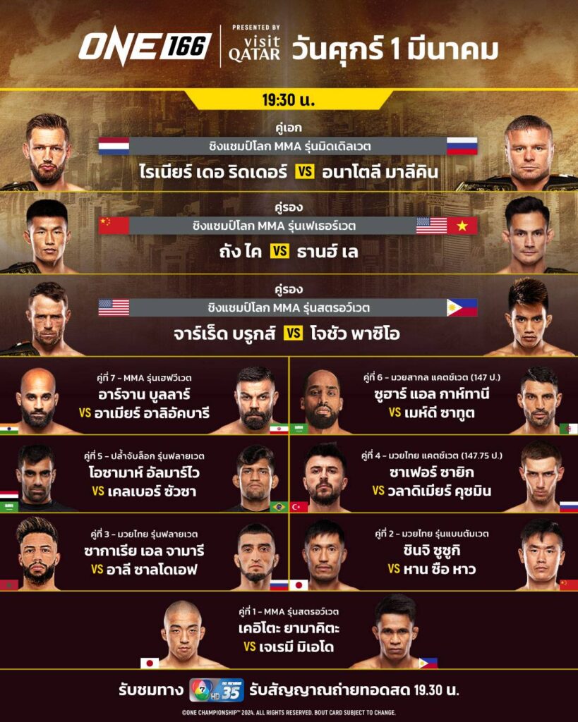 โปรแกรมการแข่งขันทุกคู่ศึก ONE 166