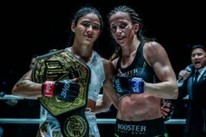 คู่รองของรายการ “อัลลิเซีย เฮลเลน รอดริเกส” แชมป์โลก ONE มวยไทย รุ่นอะตอมเวตหญิง (105 – 115 ป.) วัย 25 ปี จากบราซิล ป้องกันเข็มขัดครั้งที่ 2 พบกับ “คริสตินา โมราเลส” ผู้ท้าชิงฟอร์มดุ วัย 30 ปี จากสเปน ที่หวังมากระชากแท่นบัลลังก์ที่รอคอย