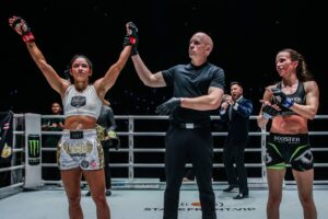 ส่วน “หยู เหยา ปุย” เจ้าของฉายา “เสกสรรในร่างหญิง” เปิดตัวครั้งแรกอย่างปังบนเวทีระดับโลก ONE ด้วยการเอาชนะคะแนนเอกฉันท์ “ลารา เฟอร์นานเดซ” นักชกสาวแดนกระทิงไปแบบสุดมัน ขณะที่ “เชียร์ โคเฮน” สาวอิสราเอล ดีกรีแชมป์ Road To ONE Thailand ซีซัน 2 เก็บแต้มชัยแรกตั้งแต่ไฟต์เปิดตัว โดยเอาชนะทีเคโอยก 2 “เทโอโดรา คิริโลวา” จากบัลแกเรีย