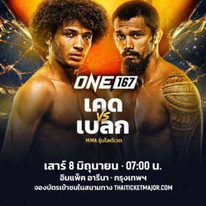 แต่ก่อนที่จะถึงการแข่งขันนัดหยุดโลกในอีก 5 เดือนข้างหน้า ทั้งคู่ยังมีภารกิจสำคัญที่ต้องโฟกัส โดยจะลงแข่งขันพร้อมกันในศึก ONE 167 วันเสาร์ที่ 8 มิ.ย.นี้ ที่อิมแพ็ค อารีนา เมืองทองธานี โดย “เคด” จะต้องก้าวขึ้นสังเวียนเพื่อโชว์ฝีมือในกติกาการต่อสู้แบบผสมผสาน (MMA) รุ่นไลต์เวต เป็นครั้งแรก พบกับ “เบลก คูเปอร์” นักสู้ จากชาติเดียวกัน