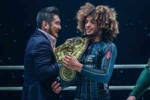 อย่างไรก็ตามไฟต์นี้ ถือว่าไม่ใช่ครั้งแรกสำหรับ “ไมกี” ที่เขาปีนเวตขึ้นมาสู้ในรุ่นใหญ่กว่า หลังเคยผ่านประสบการณ์มาแล้วในศึก ONE Fight Night 15 เมื่อเดือน ต.ค.66 โดยสามารถเอาชนะซับมิชชัน “ชินยะ อาโอกิ” สุดยอดนักรัดชาวญี่ปุ่น อดีตราชัน MMA รุ่นไลต์เวต มาได้อย่างสวยงาม ในการแข่งขันกติกาปล้ำจับล็อก แบบไม่จำกัดน้ำหนัก ซึ่งวันนั้น “ไมกี” สามารถเบ่งน้ำหนักขึ้นมาได้ถึง 154 ป.